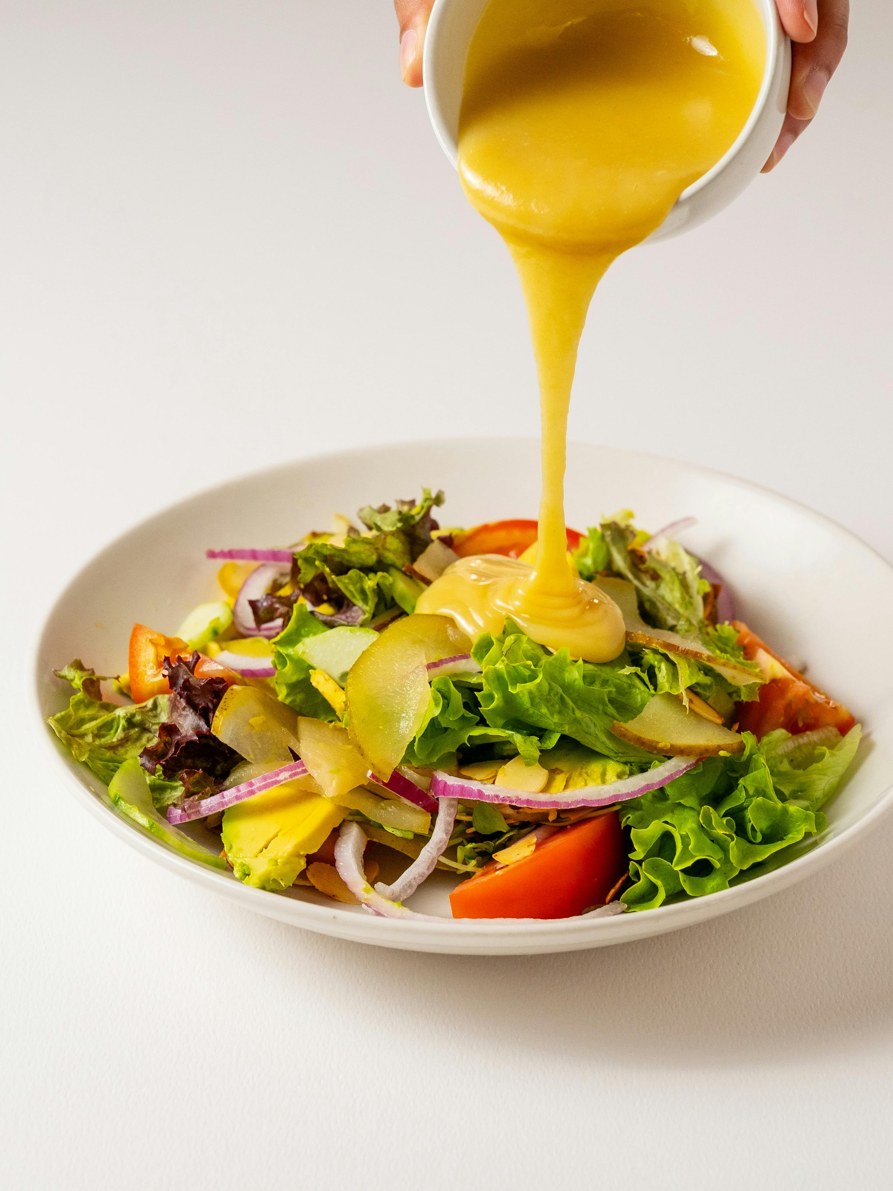 A Blend Of Mix Vegetables, Olive Oil, Lemon Juice And A Pomegranate Sauce