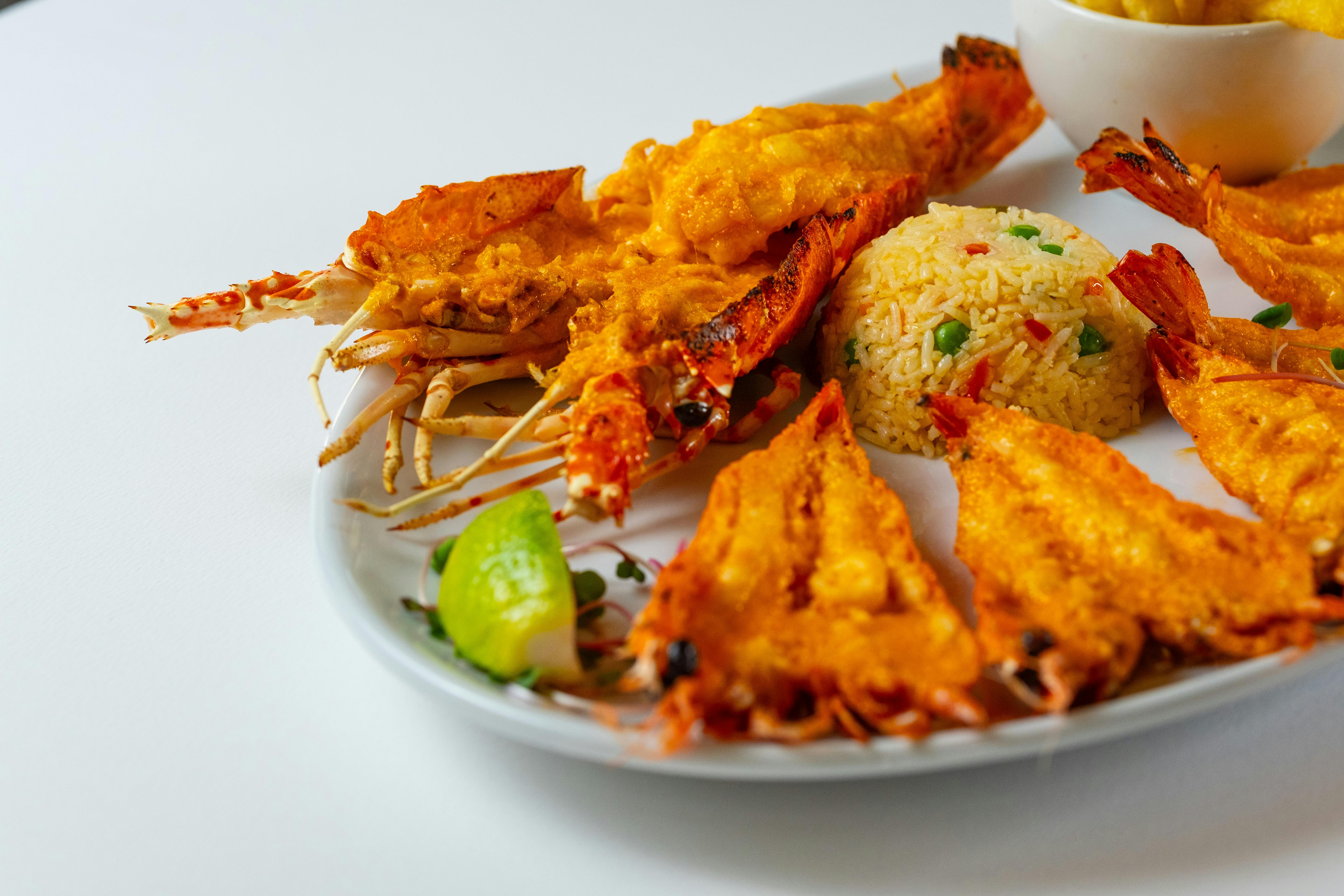 All seafood Is Prepared In Your Choice Of Lemon Garlic, Lemon Butter Or Peri Peri And Served With Rice And Chips