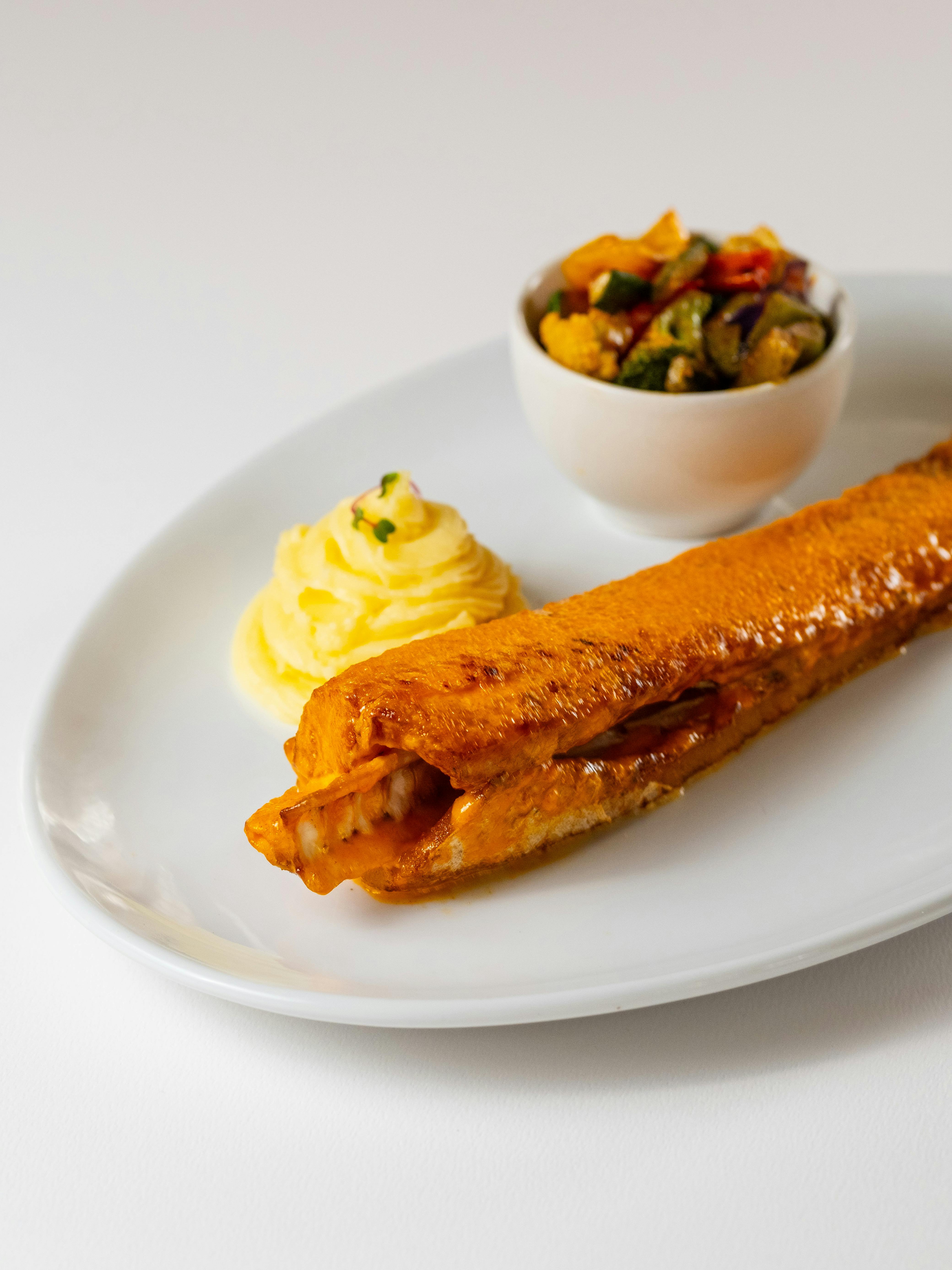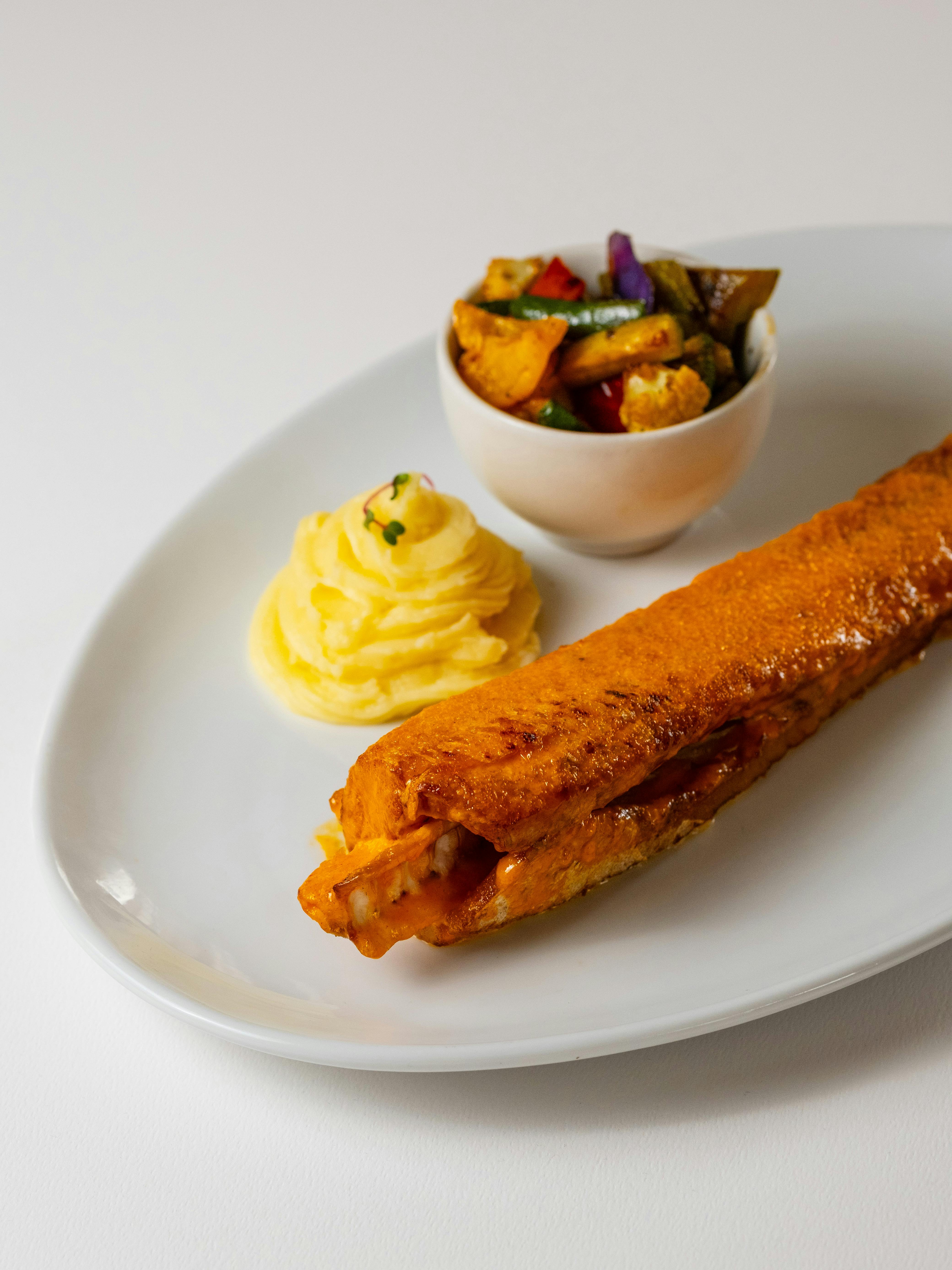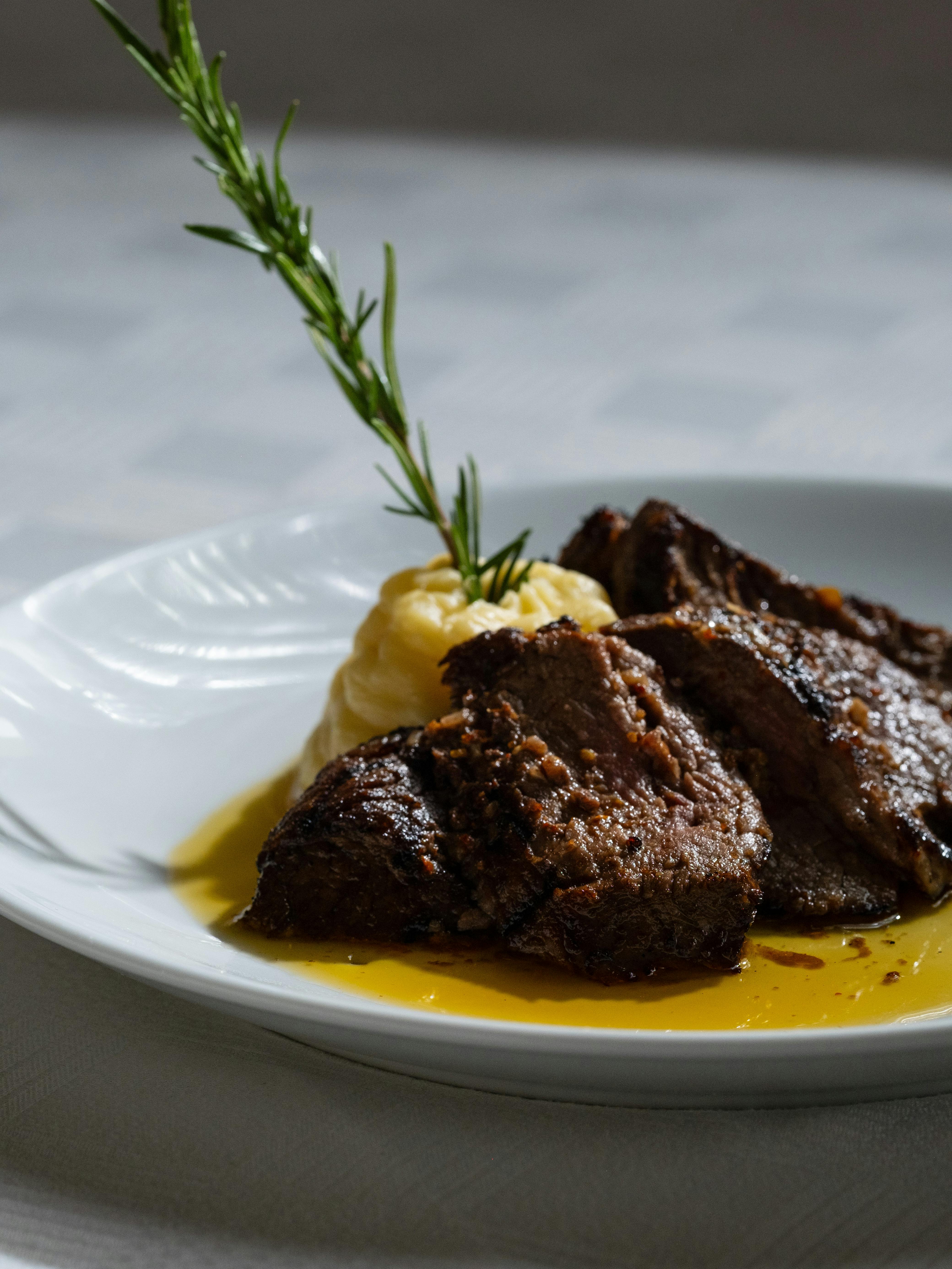 Tender Fillet Steak Oven-Baked With A Hint Of Chilli, Cooked To Your Liking For A Perfect Balance Of Flavour And Tenderness Served With Mash.