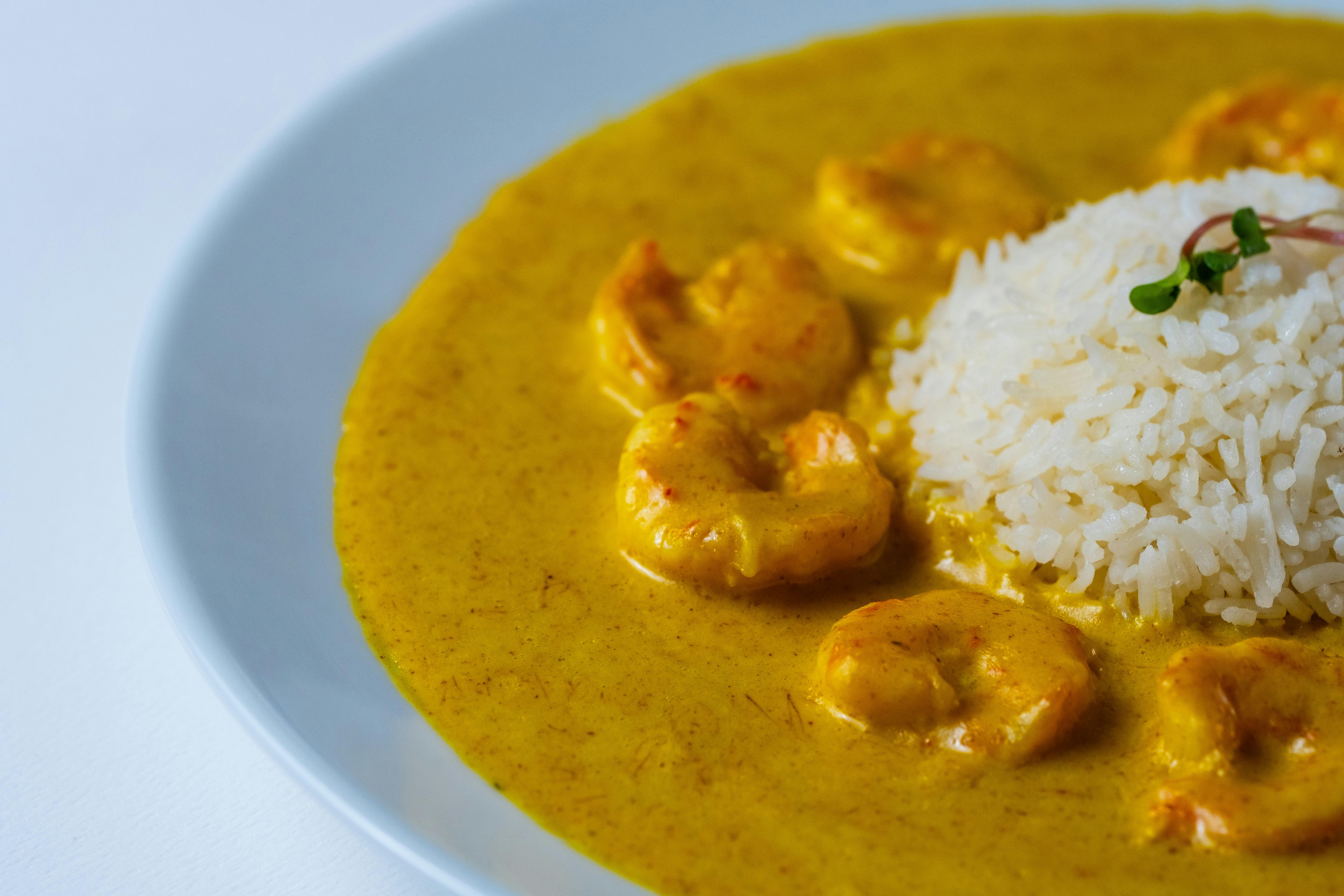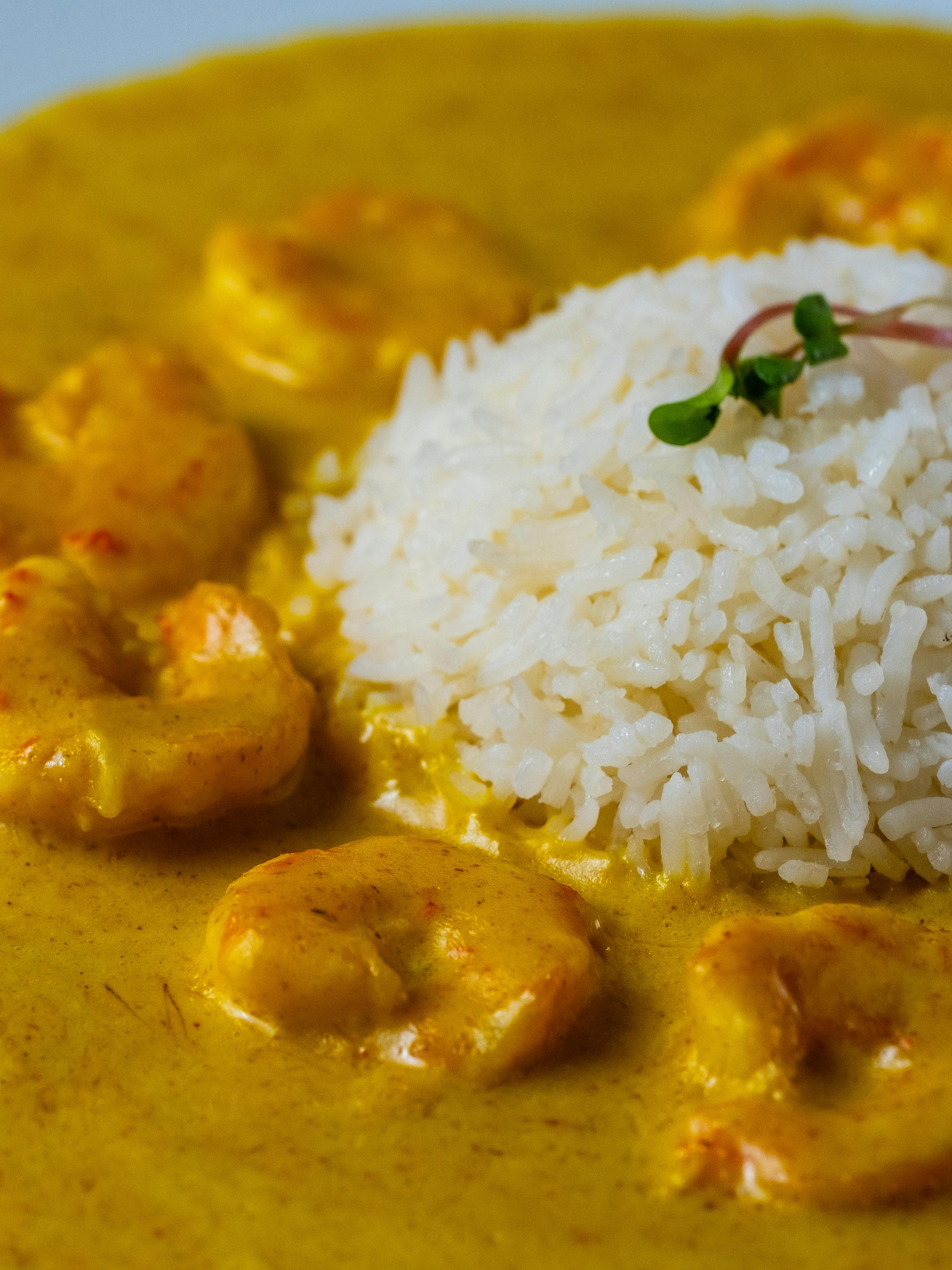 10 Prawns Cooked In A Coconut Mozambican Curry Served With Rice
