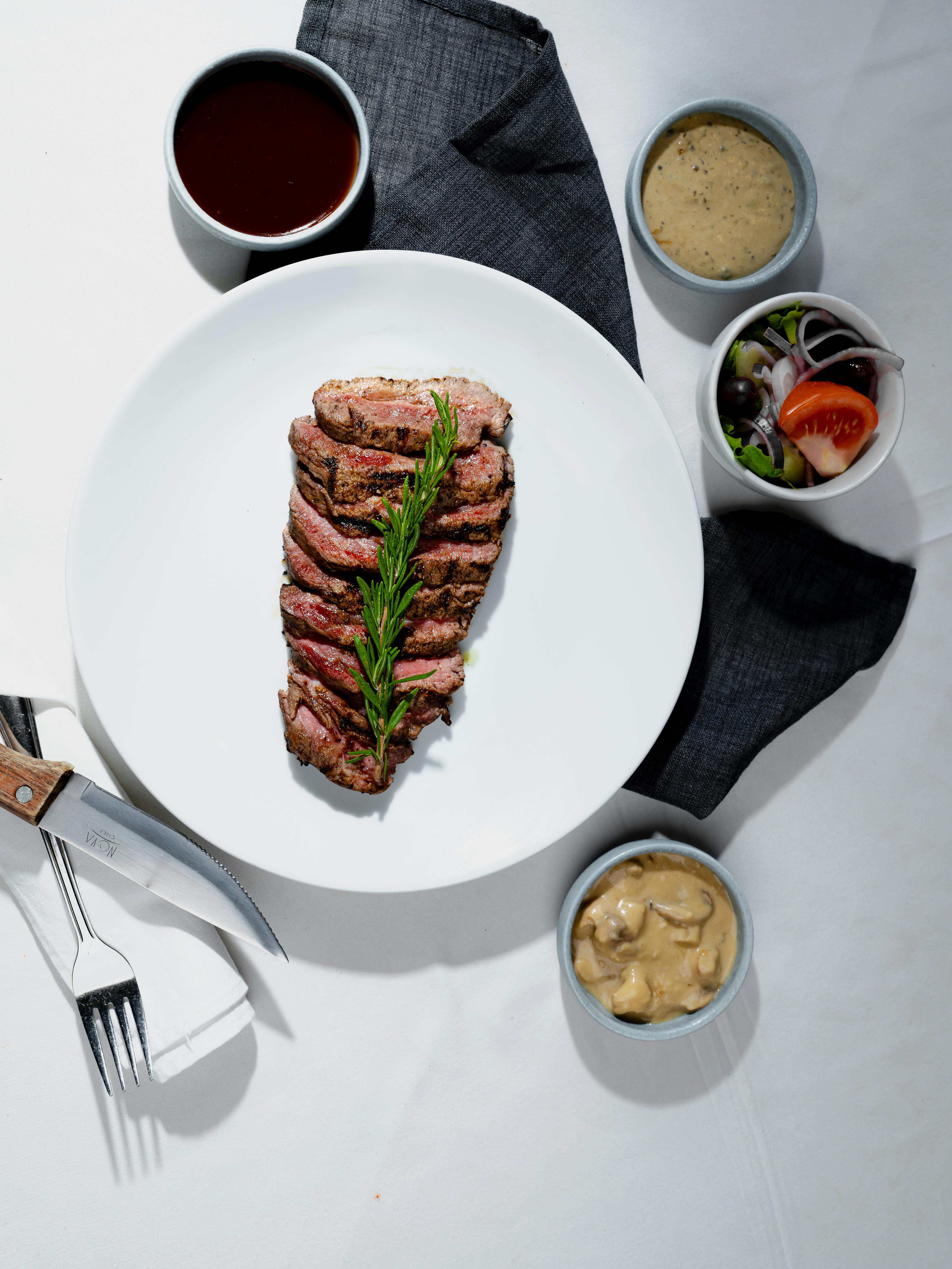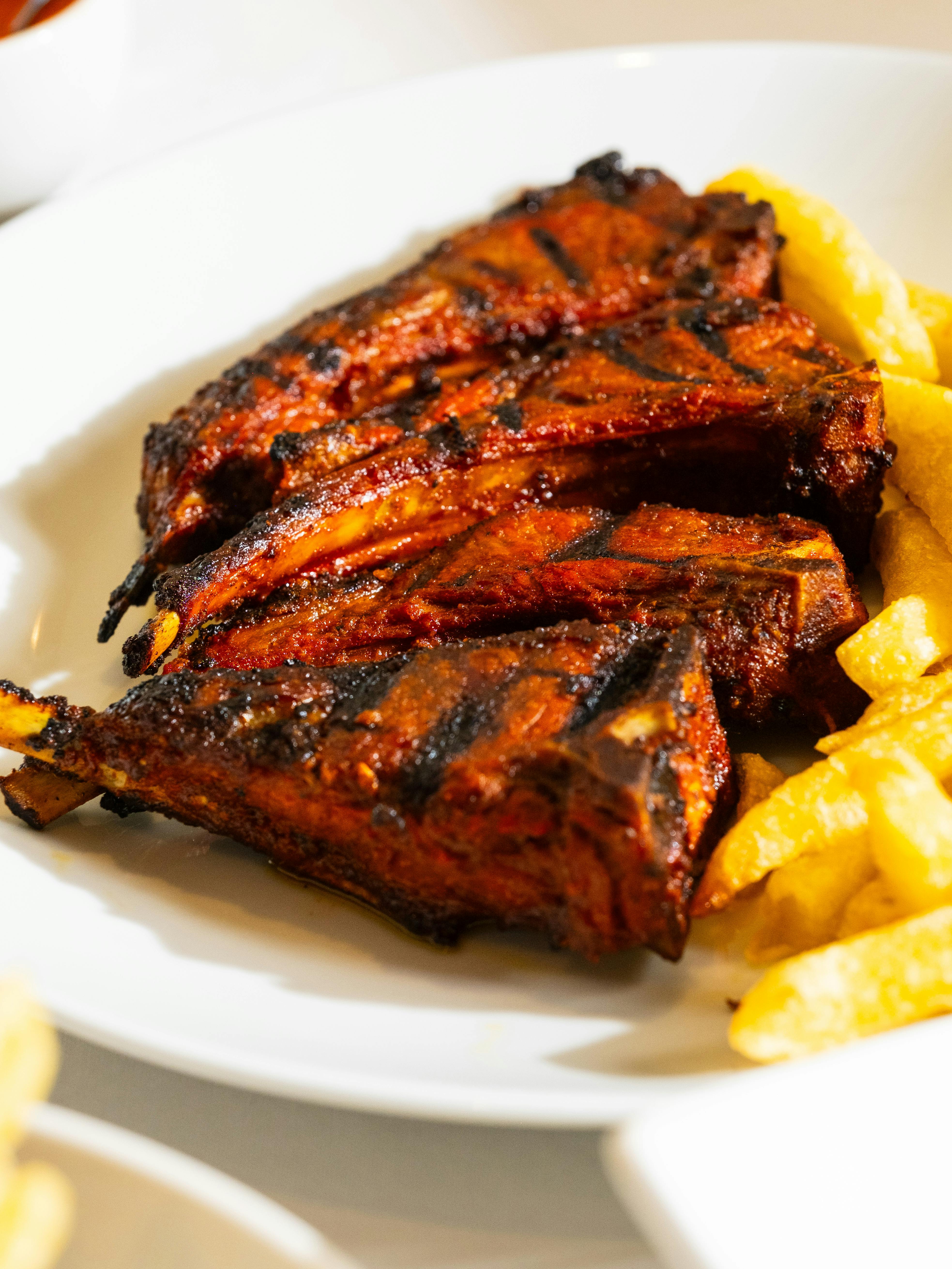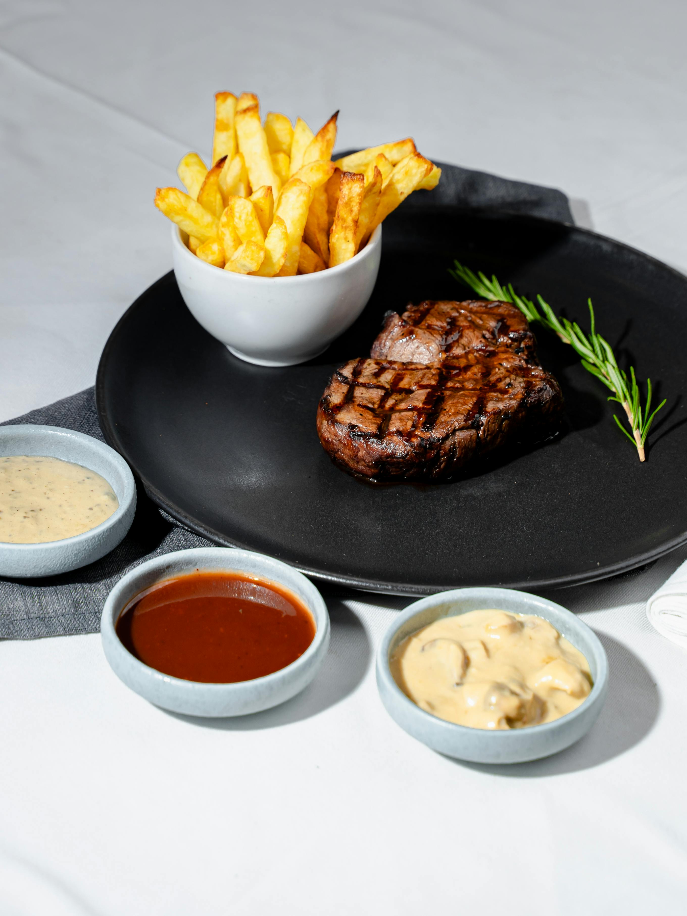 Succulent Rib-Eye Steak Seasoned To Perfection Served With Freshly Cut Seasoned Chips. All Our Steaks Are Served In Your Choice Of Salt And Pepper, Dry Rub, Barbecue Or Masala Basting.
