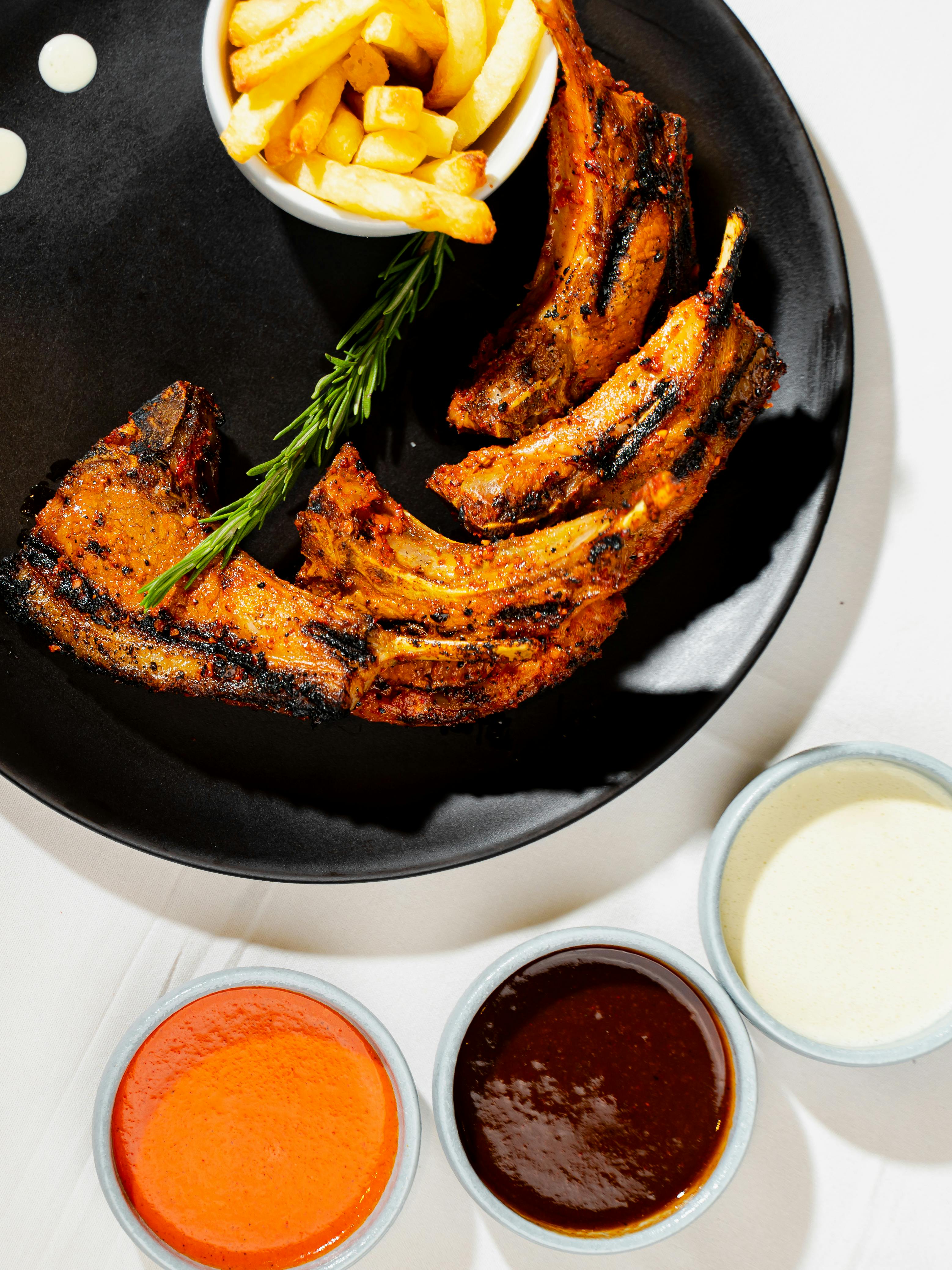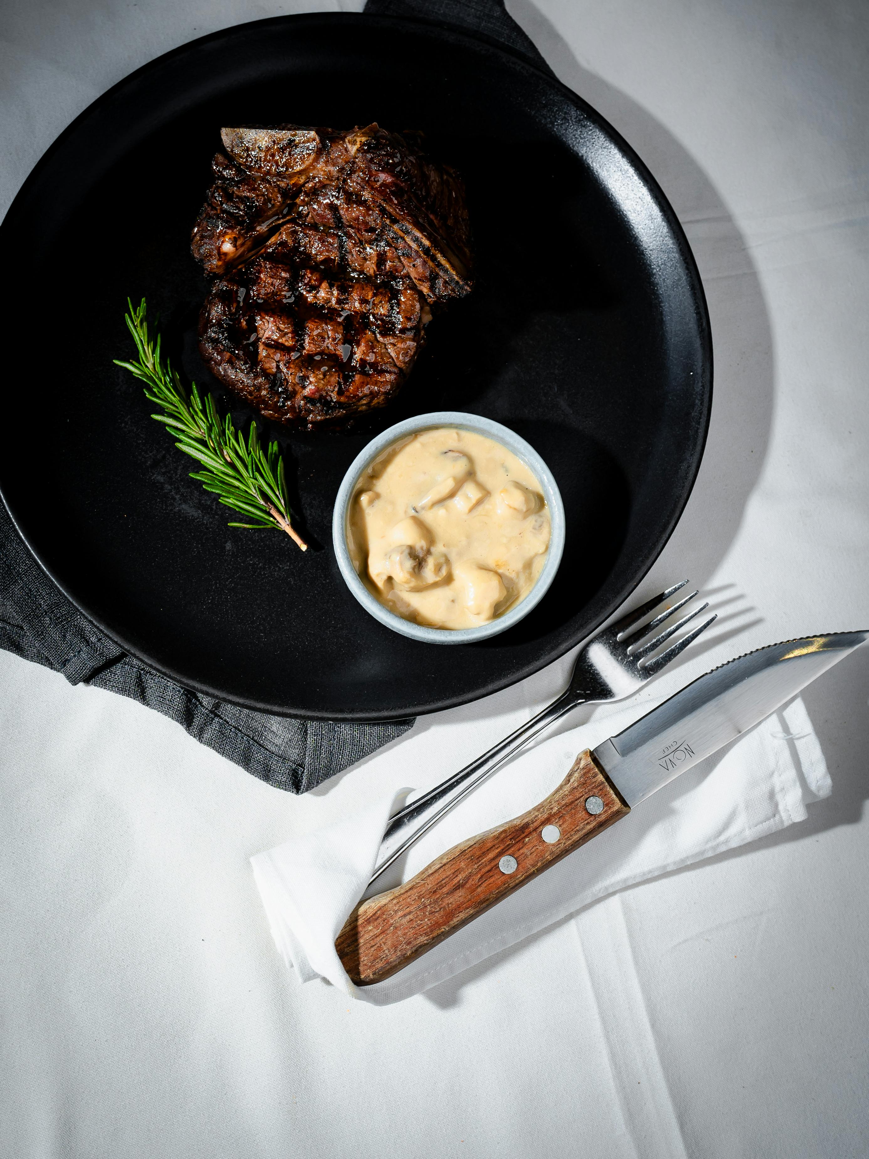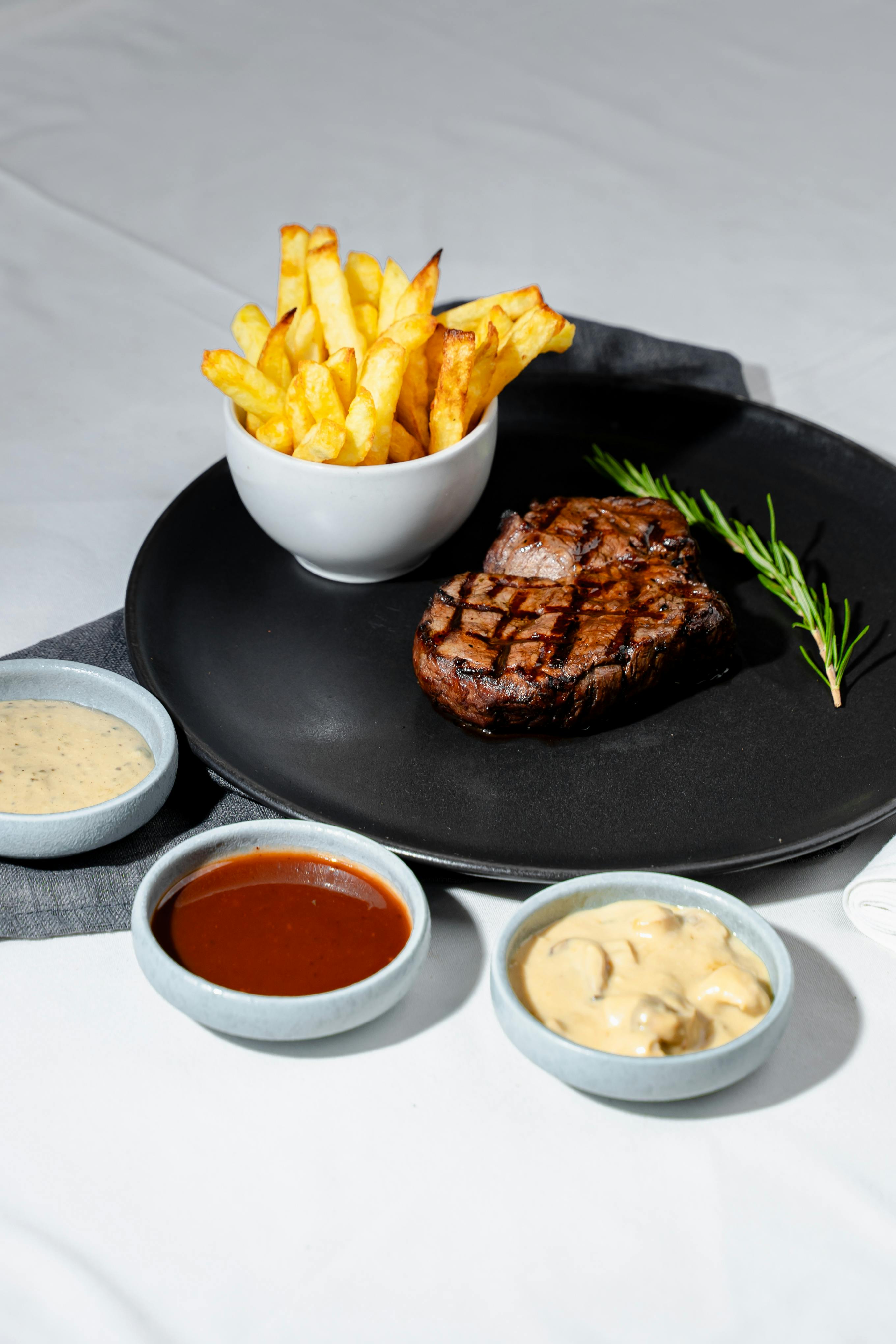 Succulent Rib-Eye Steak Seasoned To Perfection Served With Freshly Cut Seasoned Chips. All Our Steaks Are Served In Your Choice Of Salt And Pepper, Dry Rub, Barbecue Or Masala Basting.