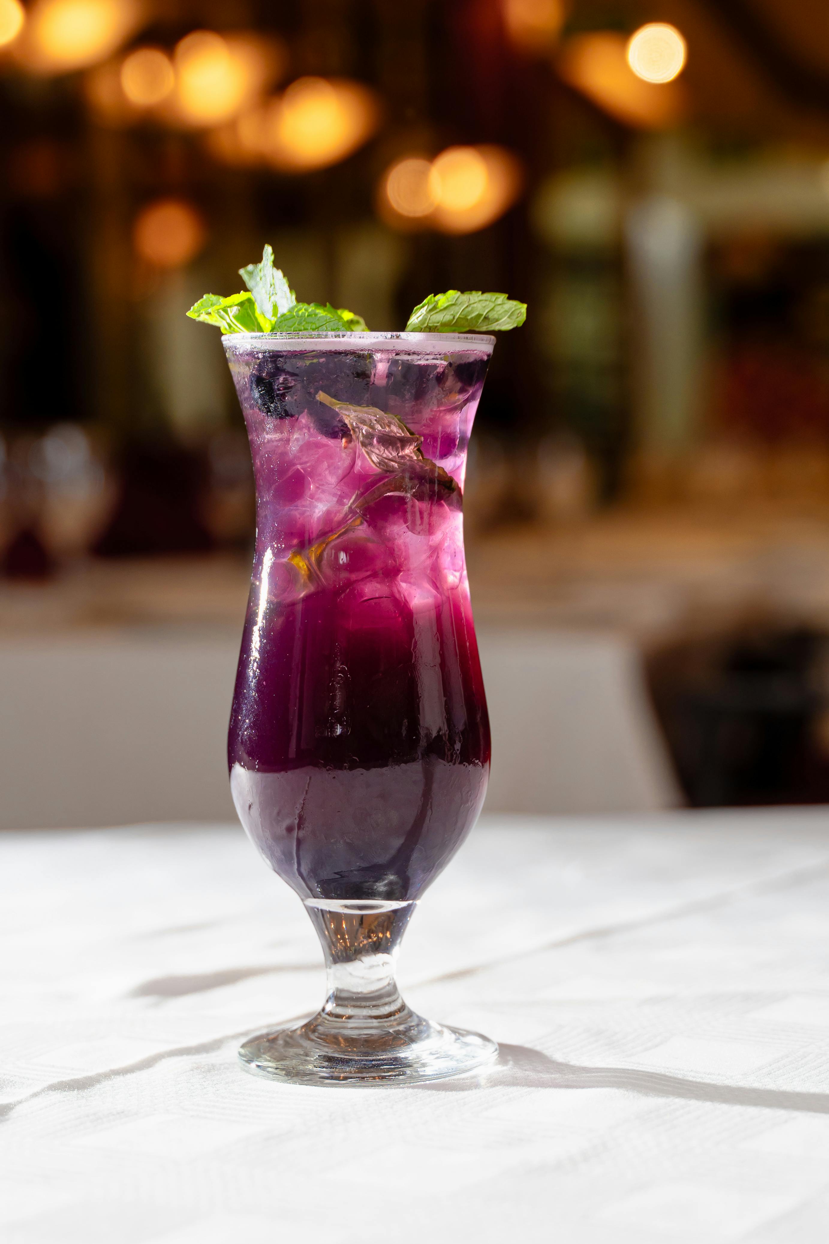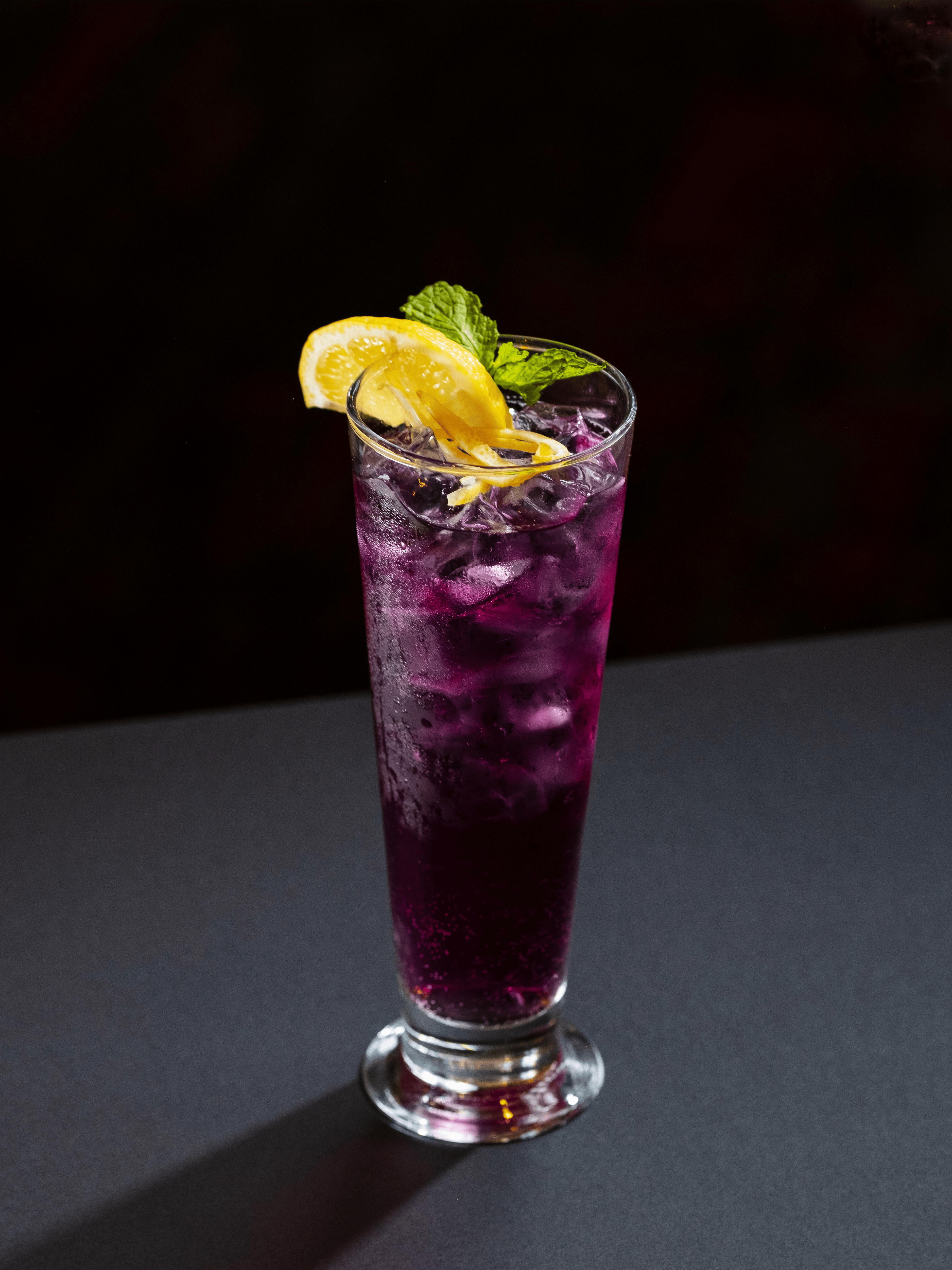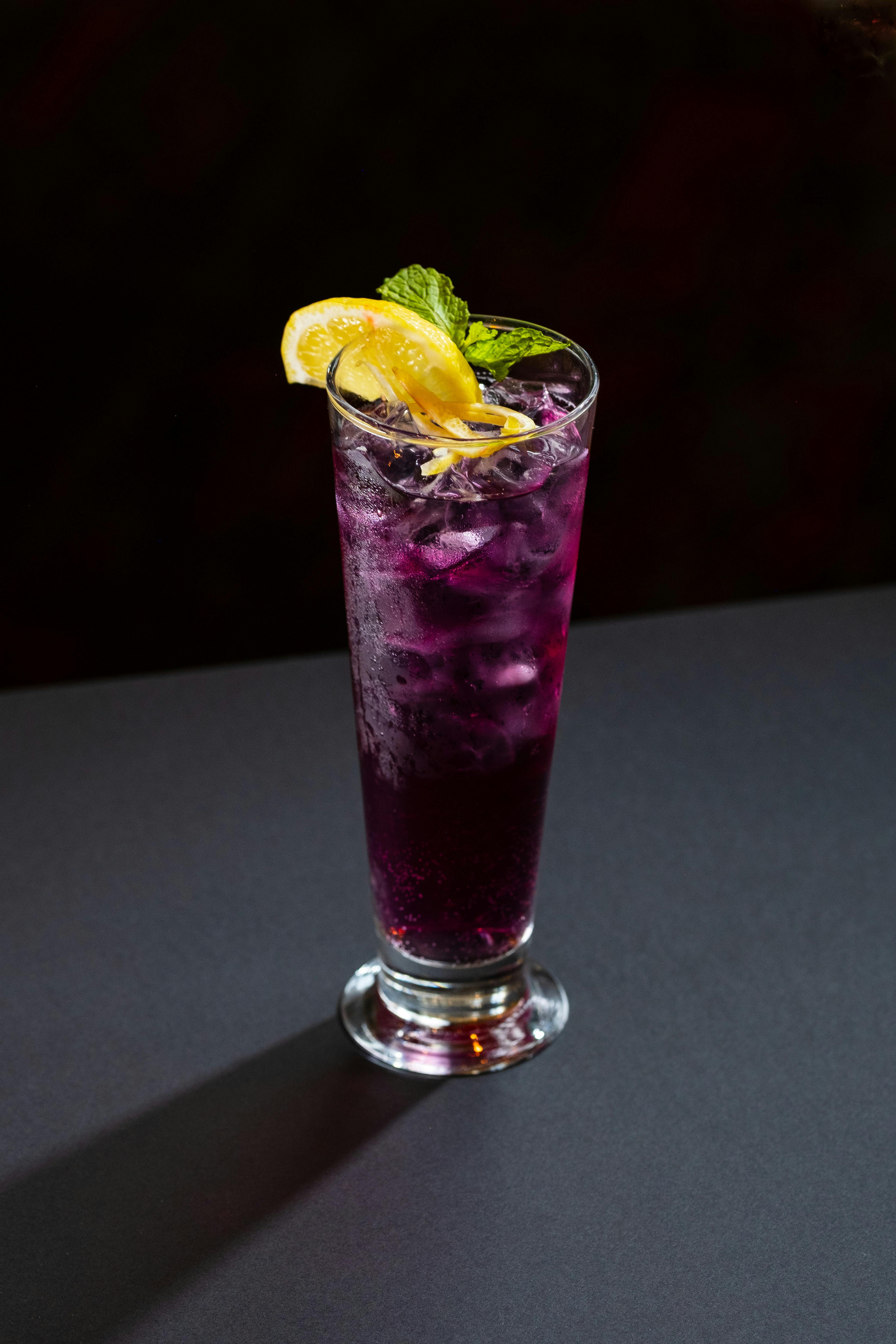 A Cloudy Lemonade Infused With Lavender Extract Topped With Ice.