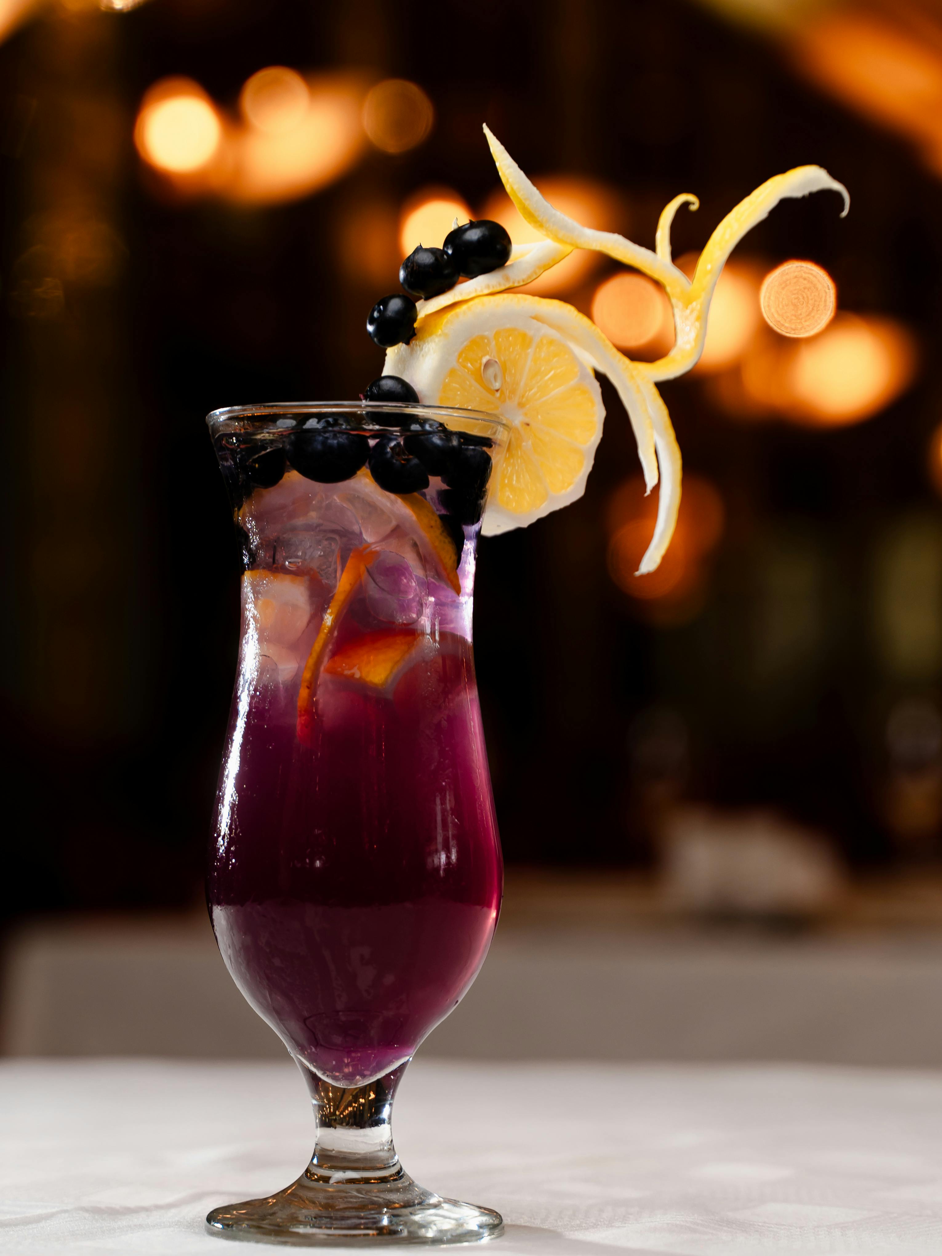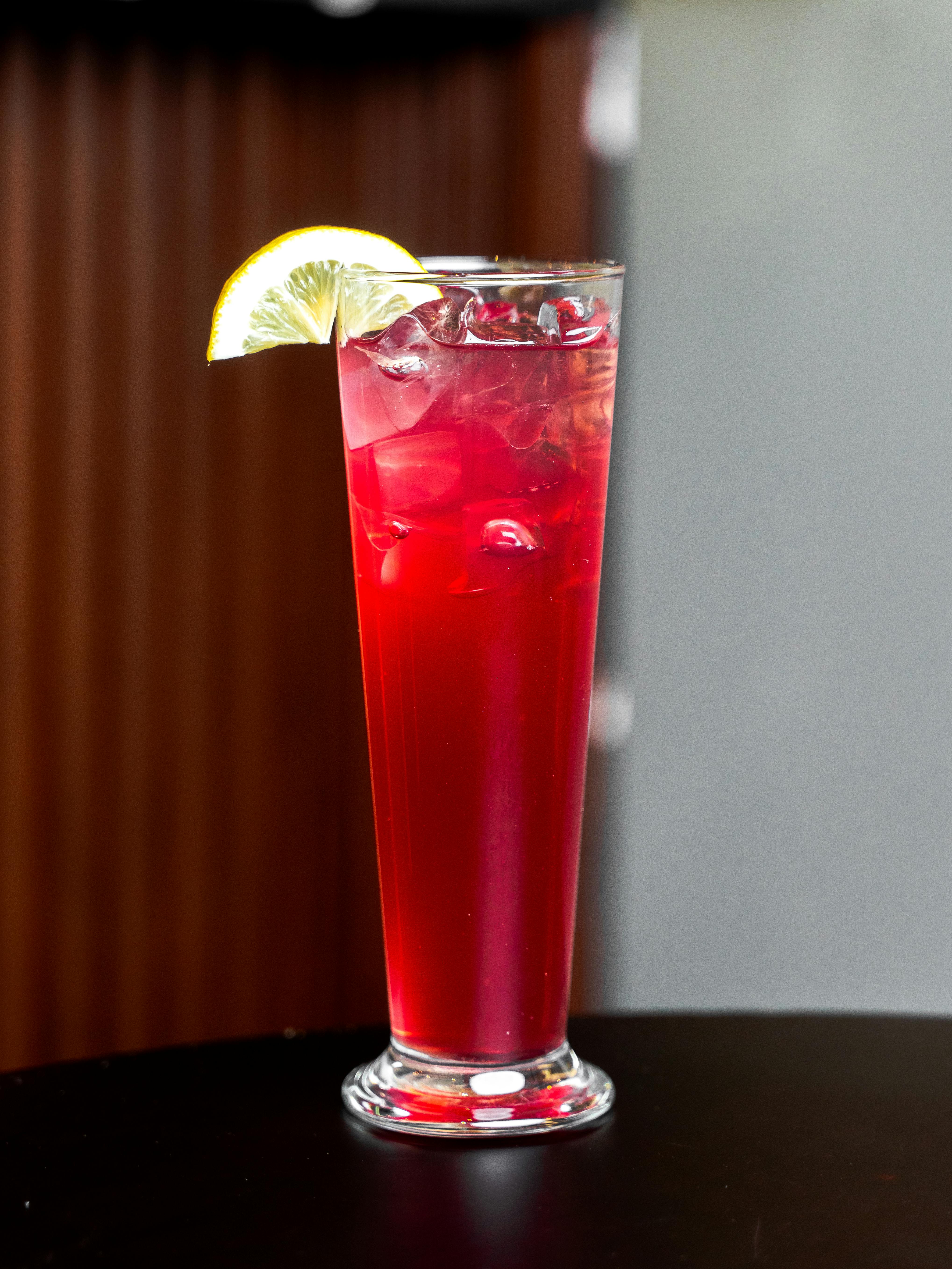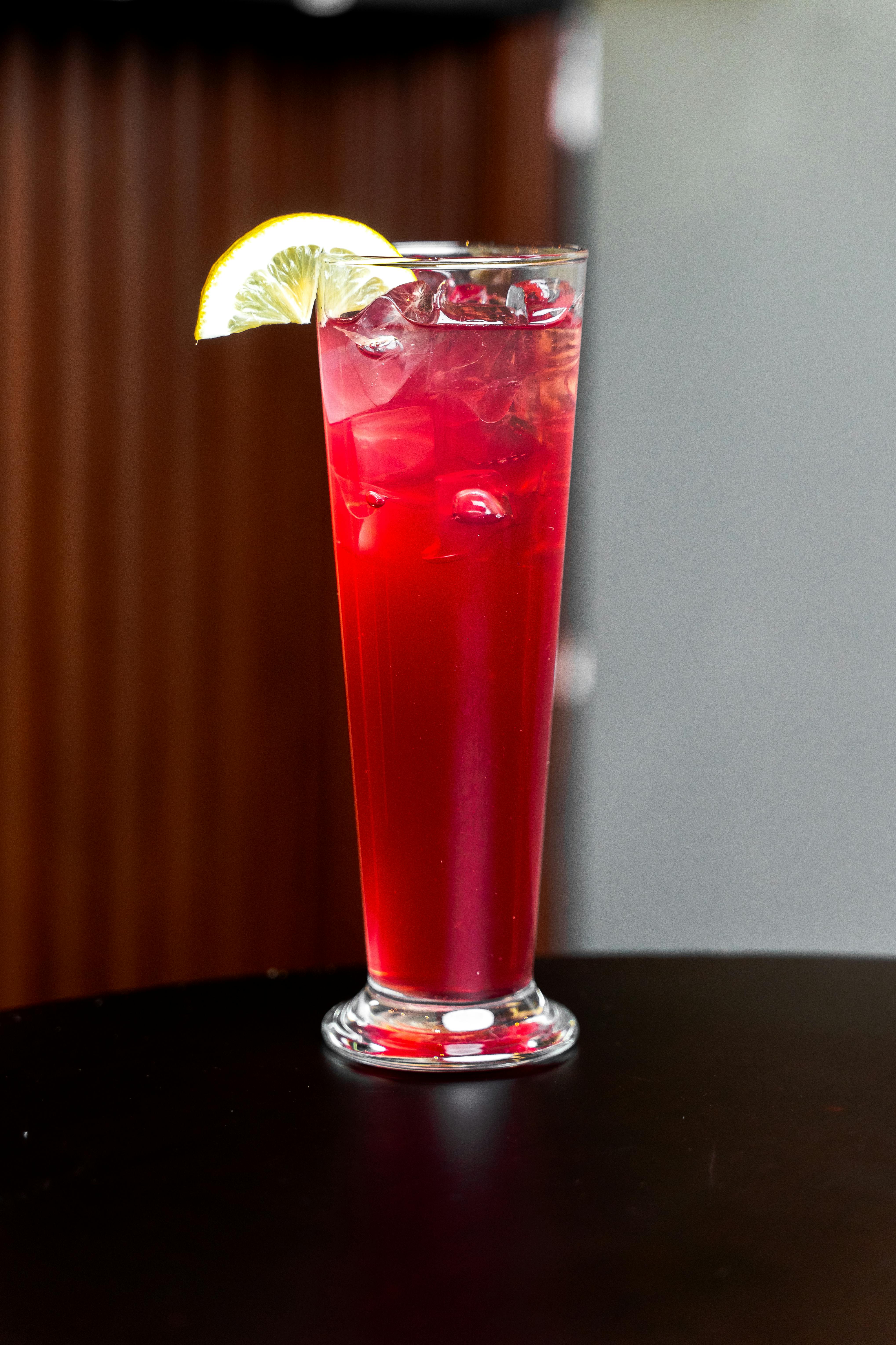 A Cloudy Lemonade Infused With Lavender Extract Topped With Ice.