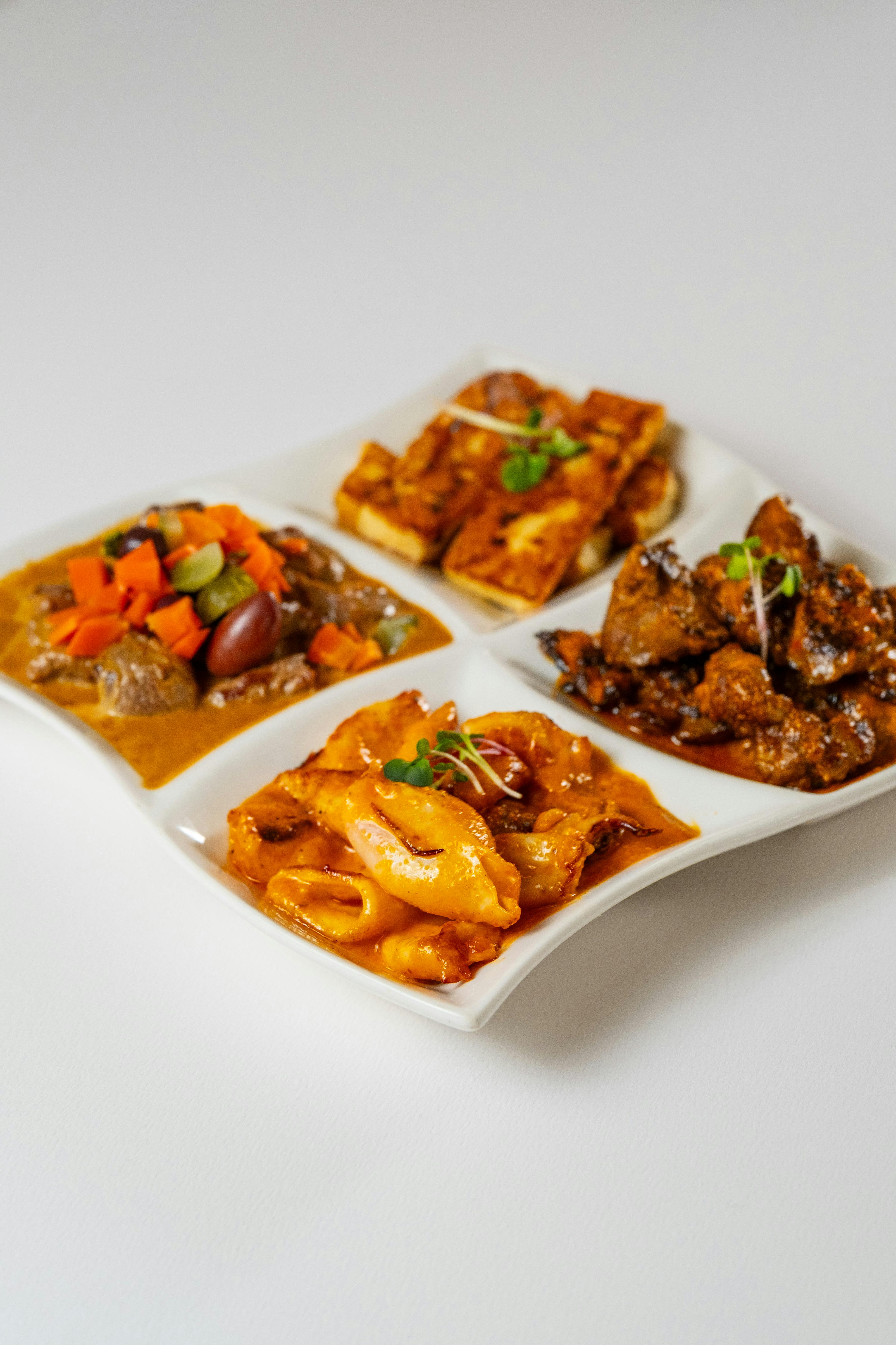 Served With Savoury Rice And Stir-Fried Vegetables.