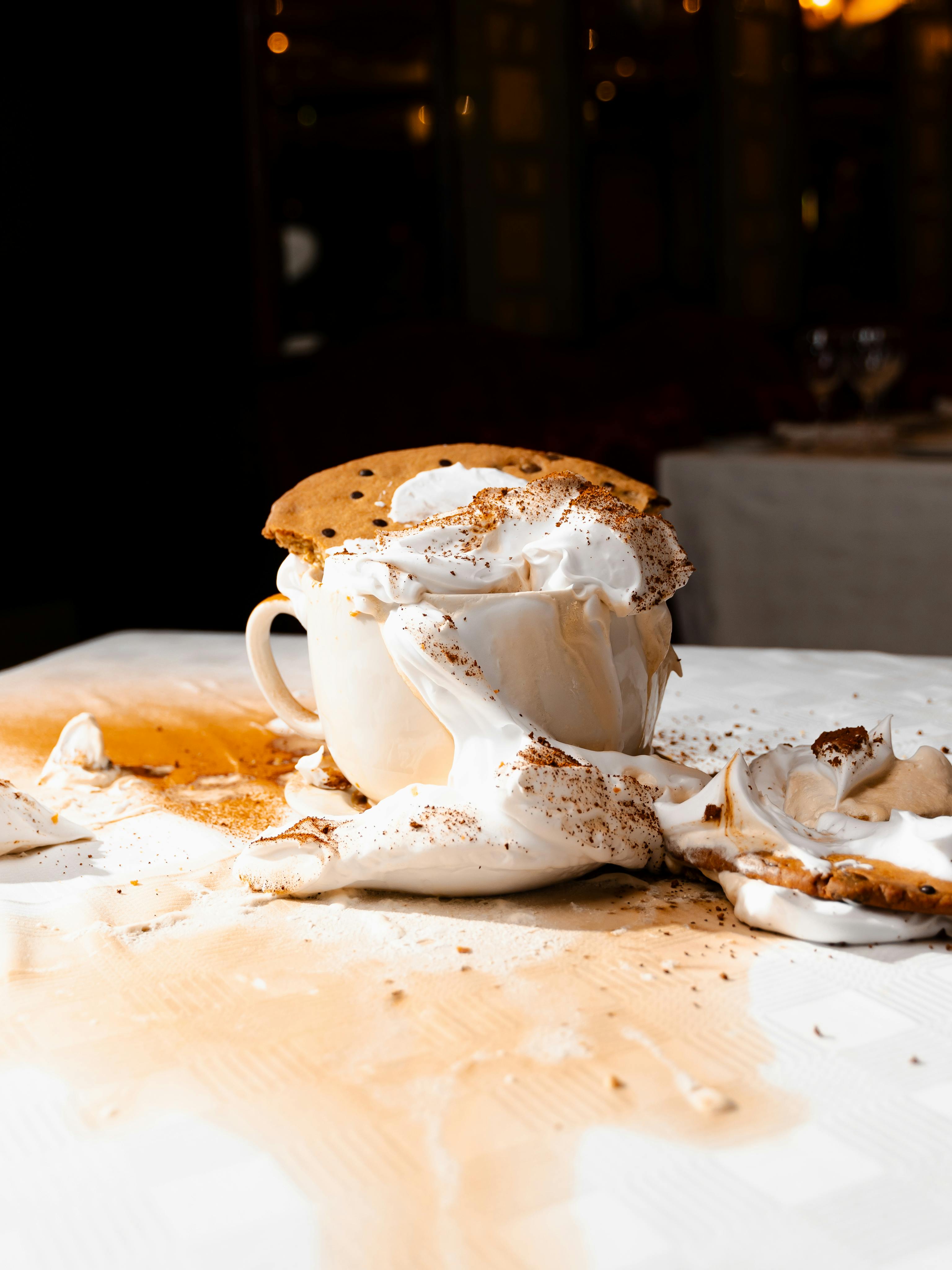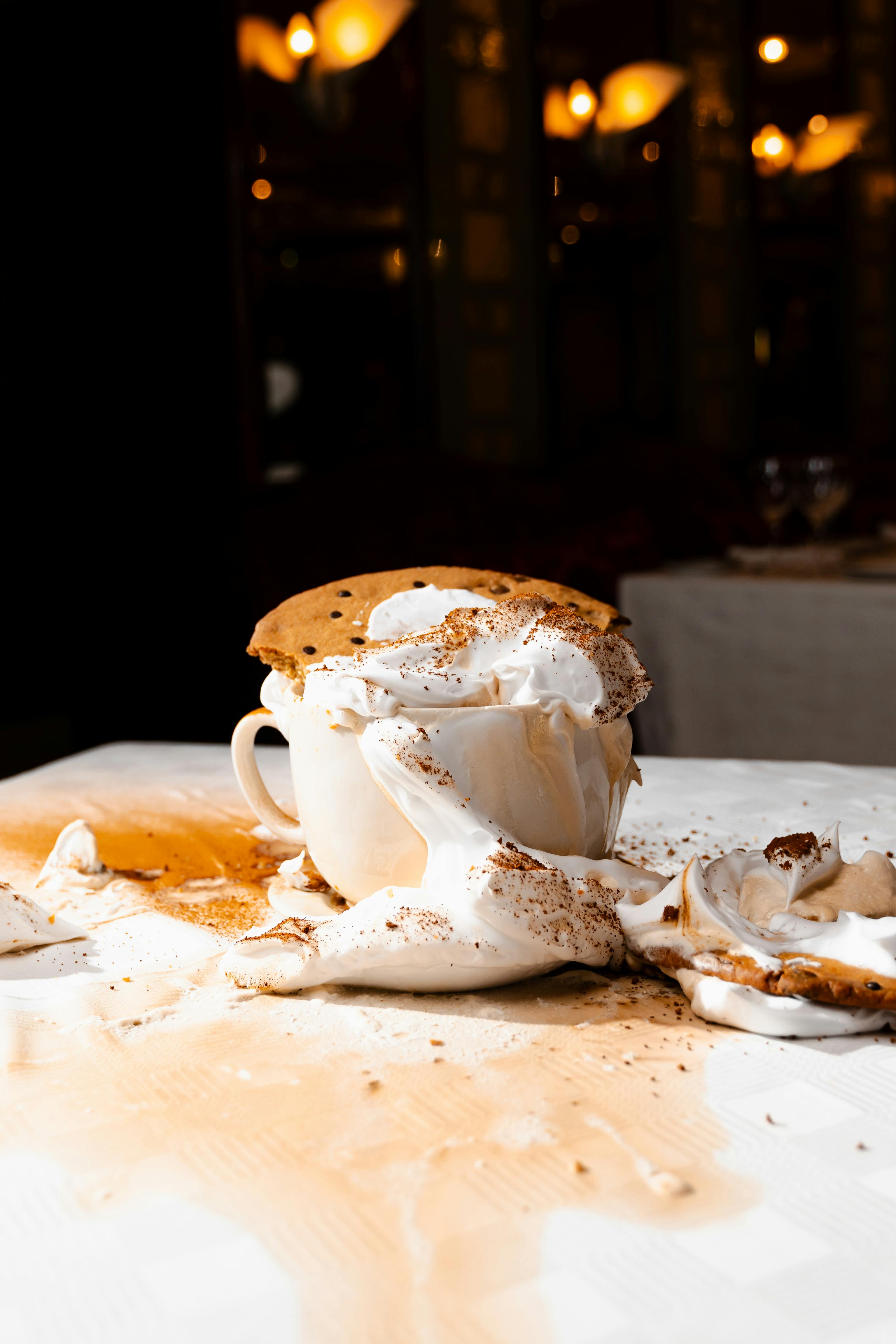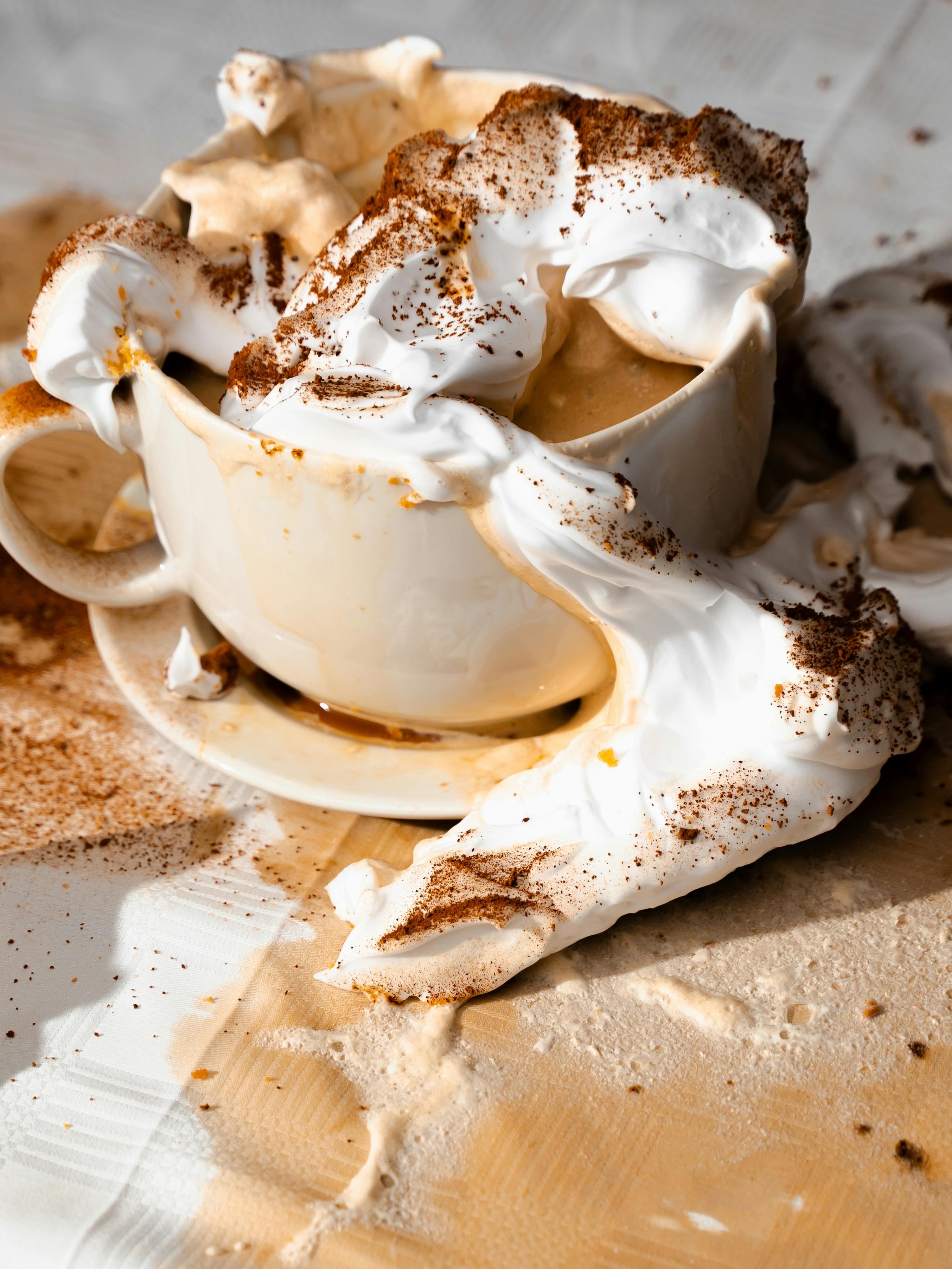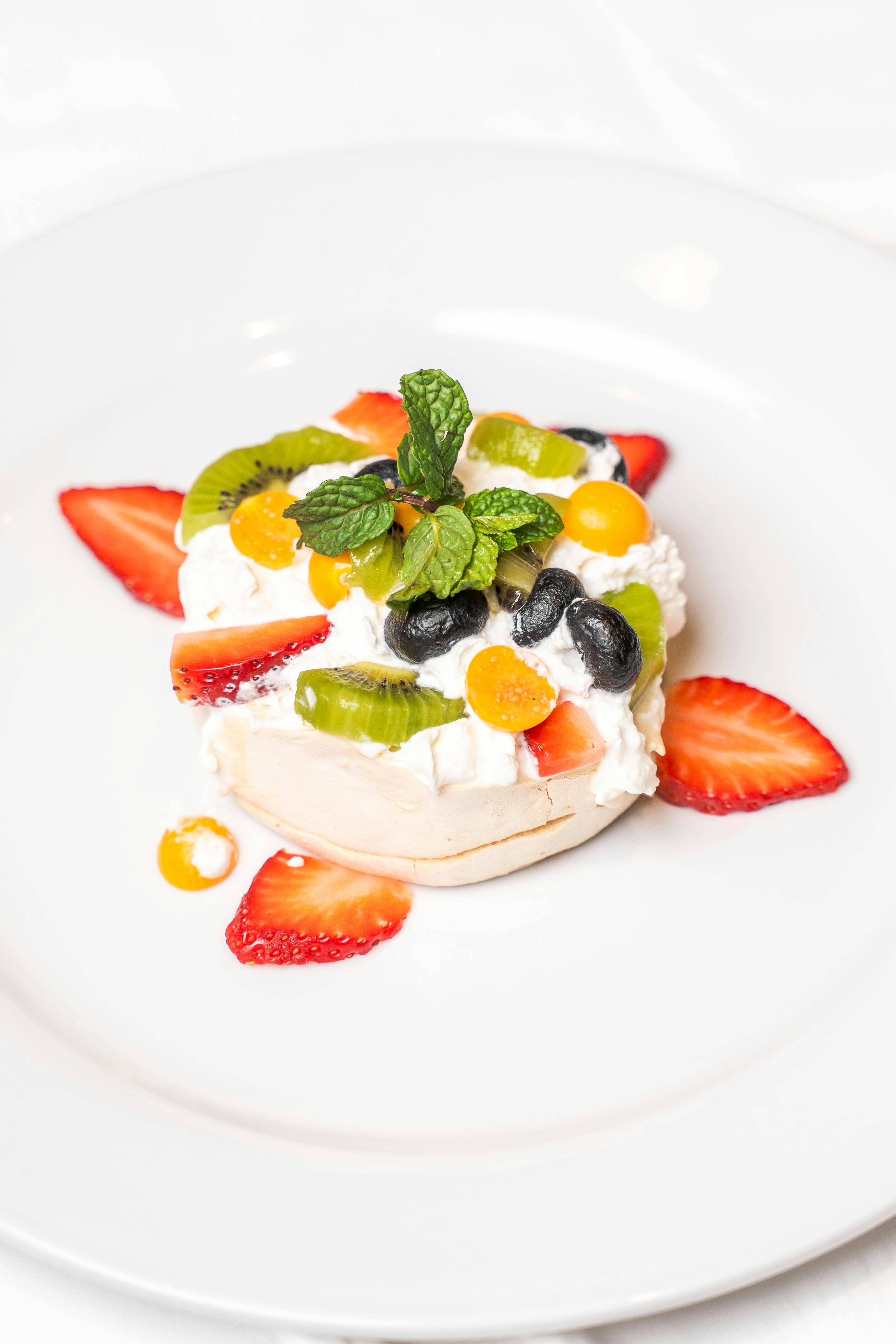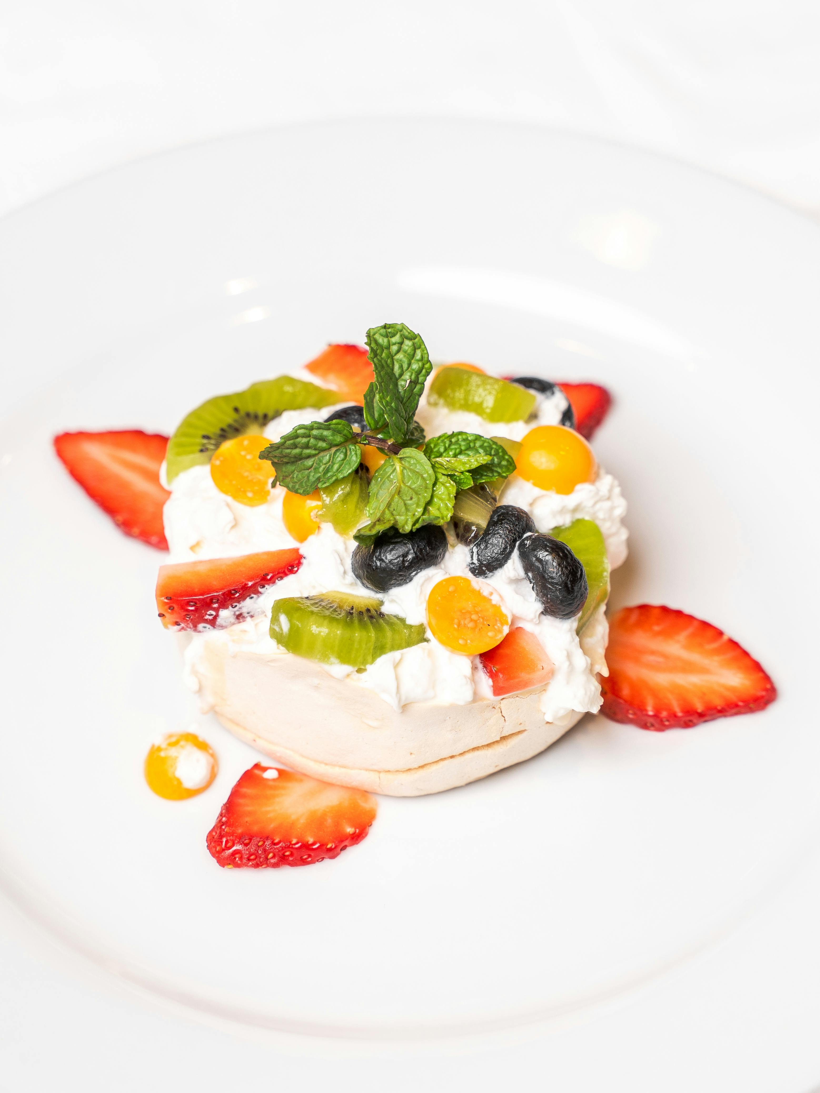 House Made Meringue Topped With Whipped Cream And A Fresh Fruit Coulis.