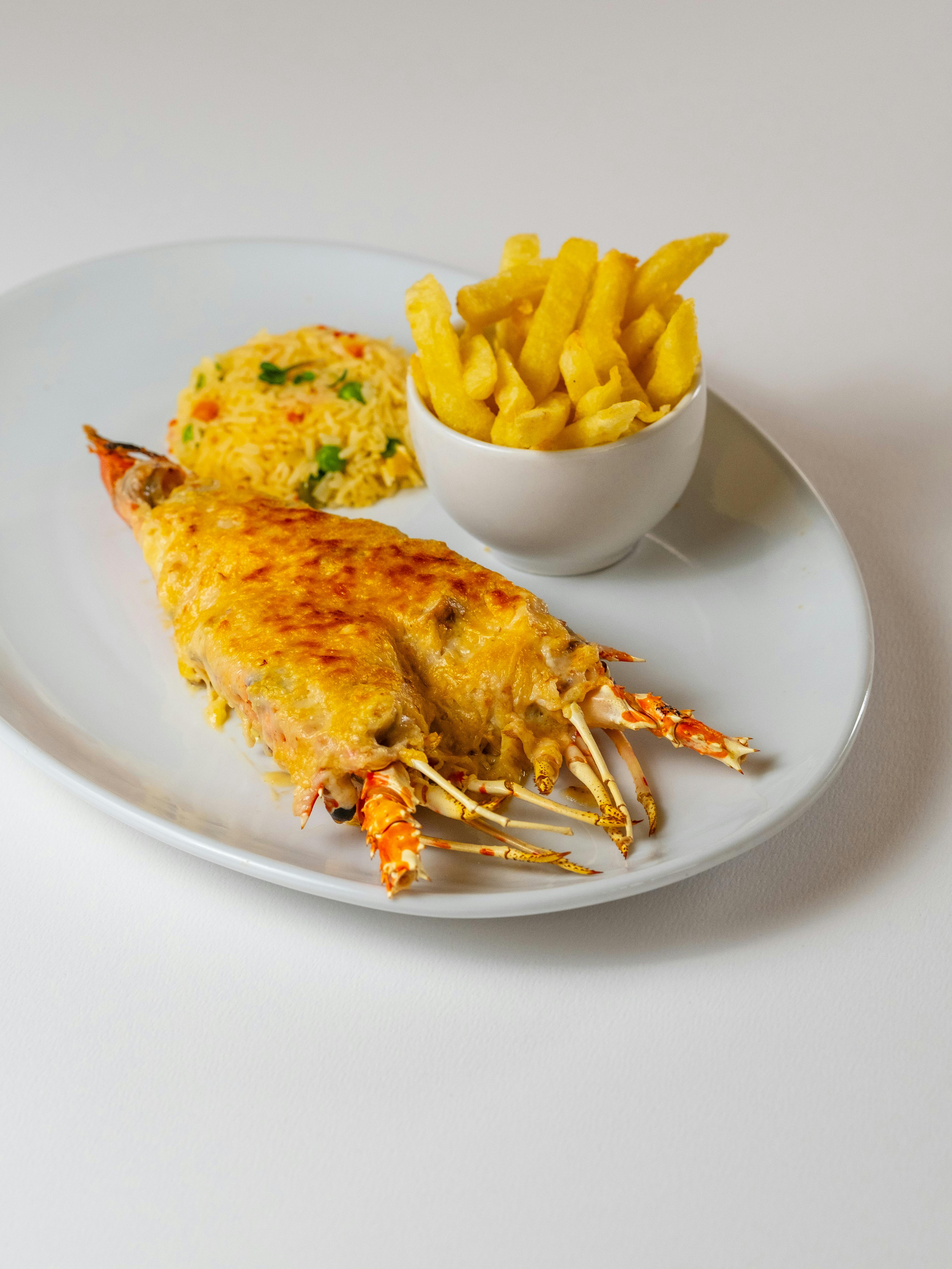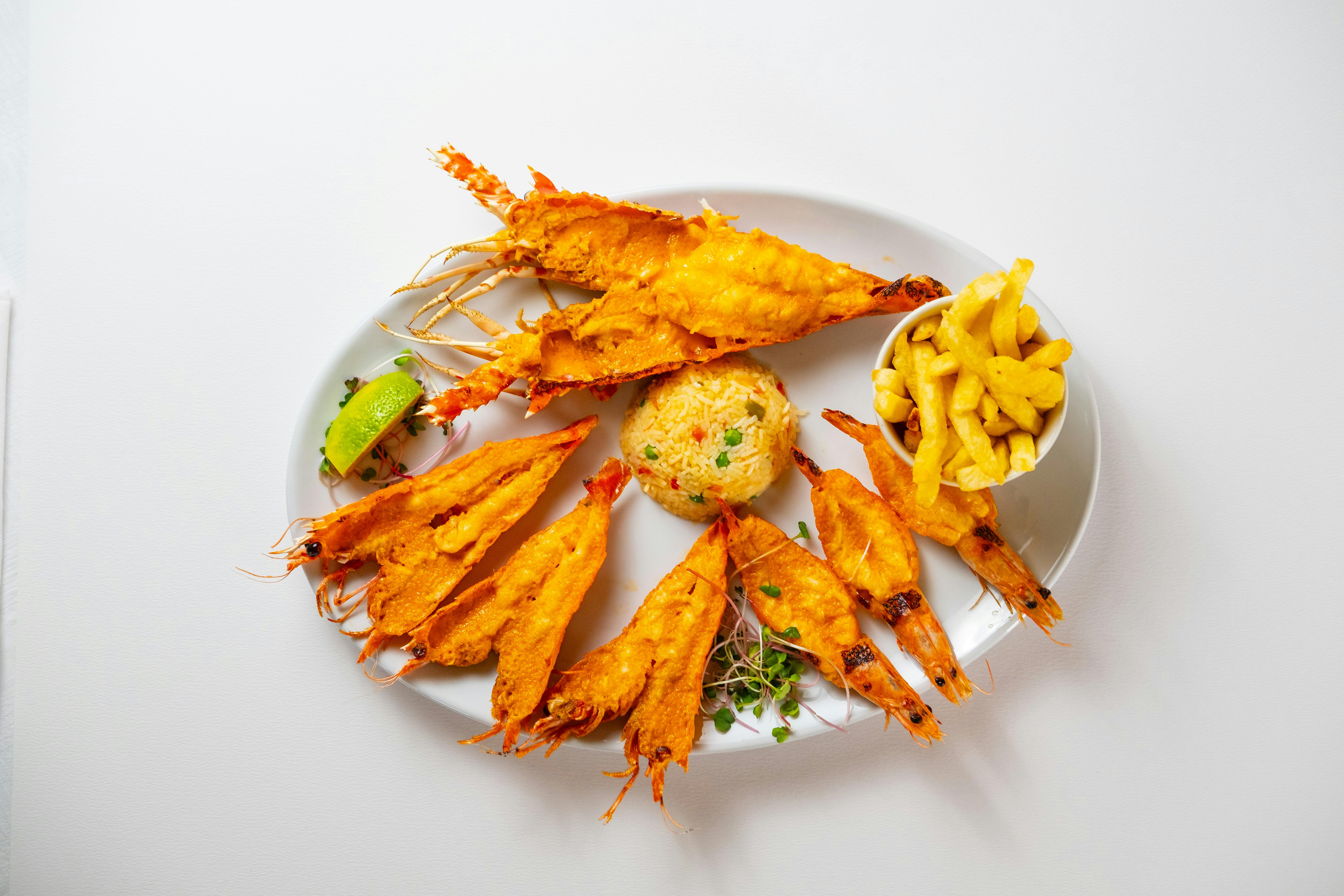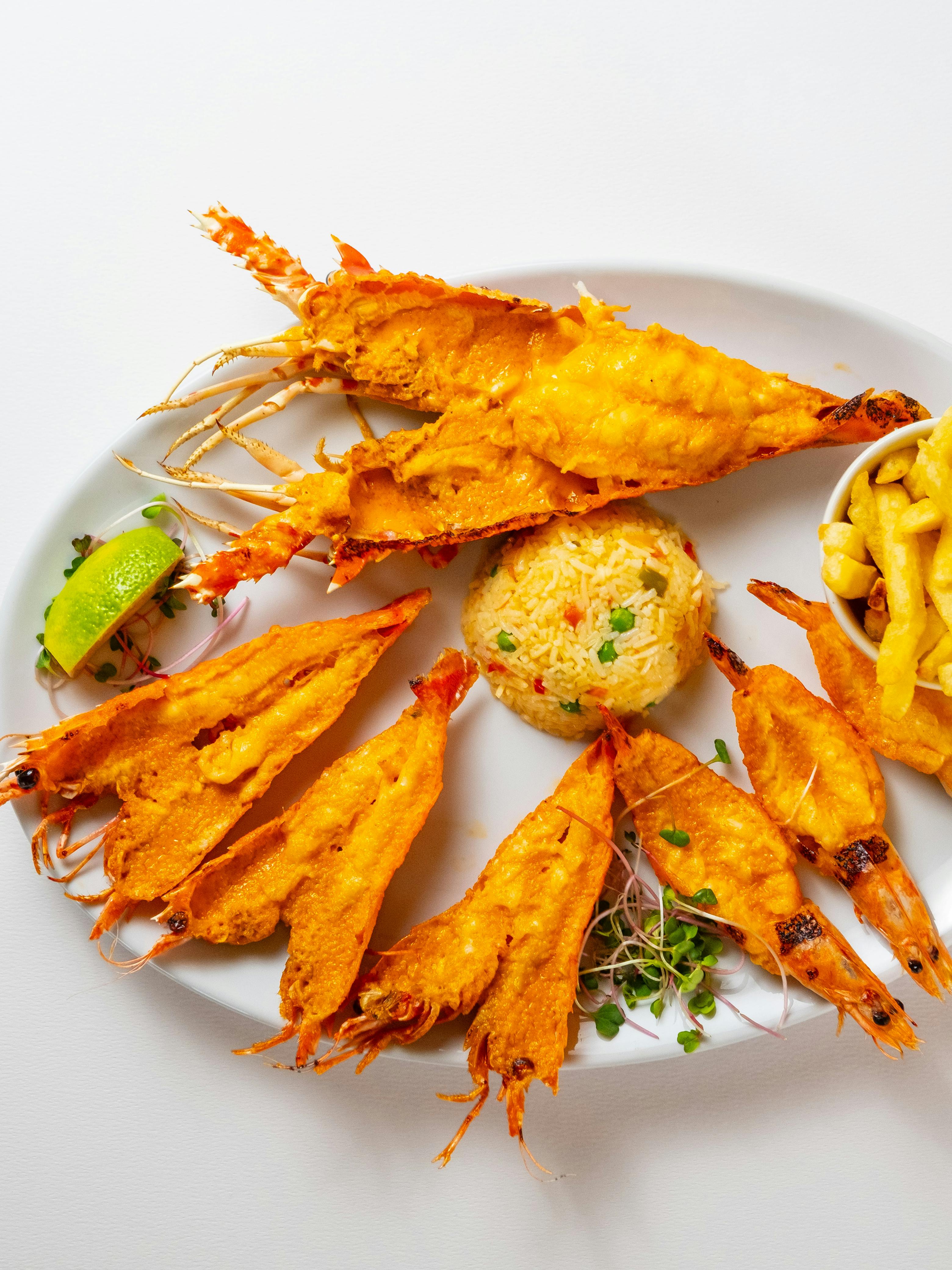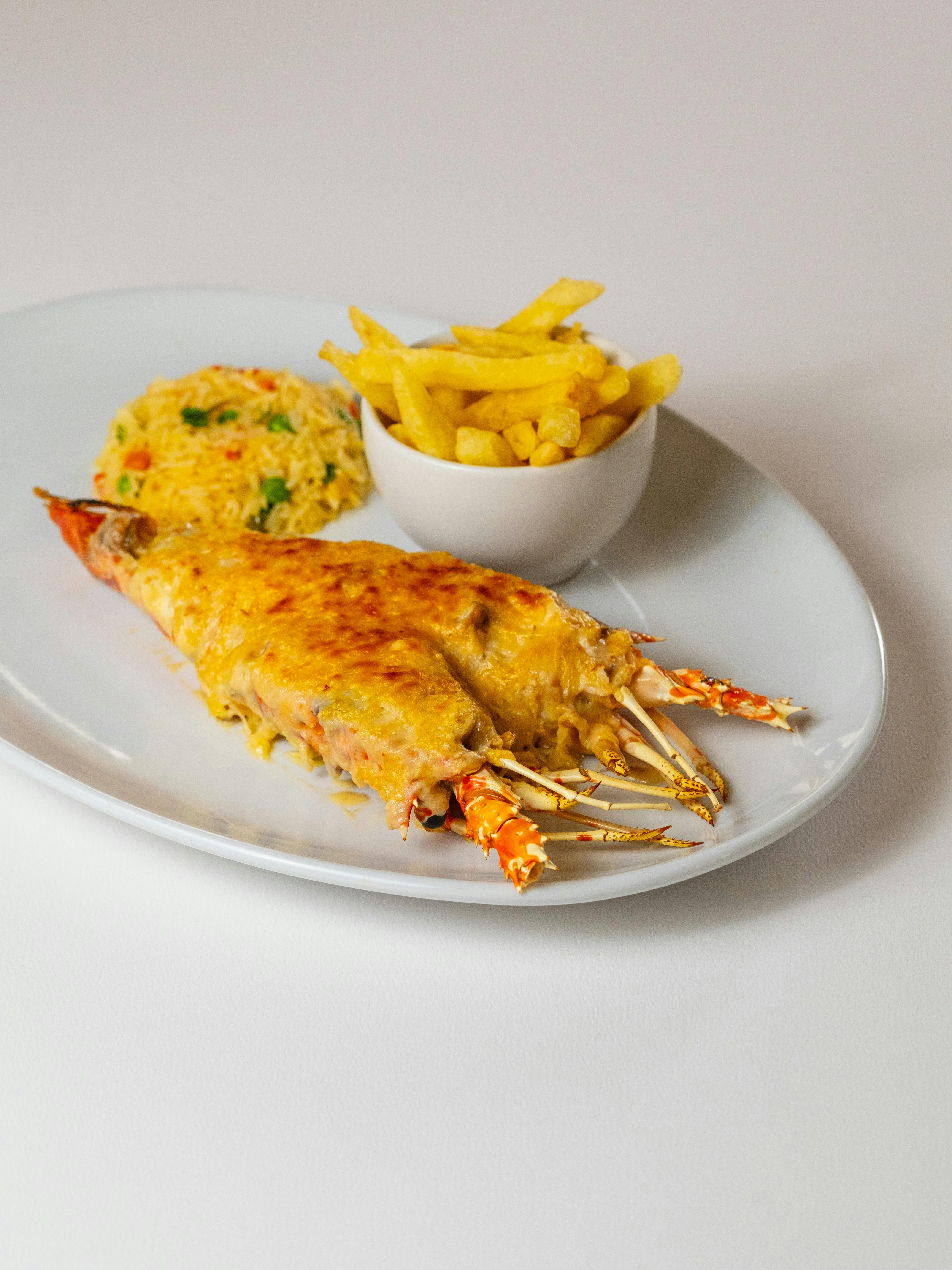 3 Queen Prawns, 3 Langoustines And 1 Baby Lobster (Served With Fries And Rice).