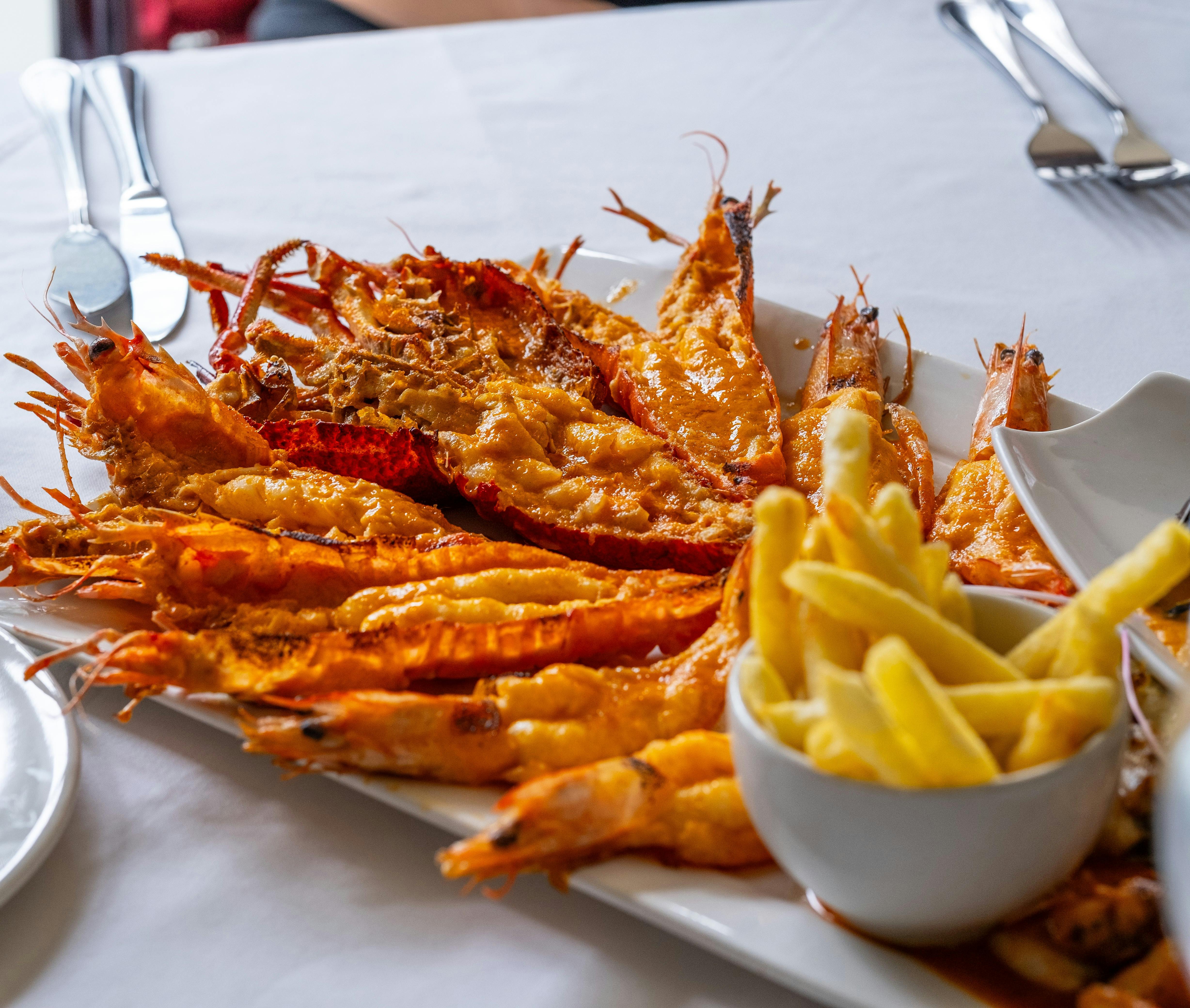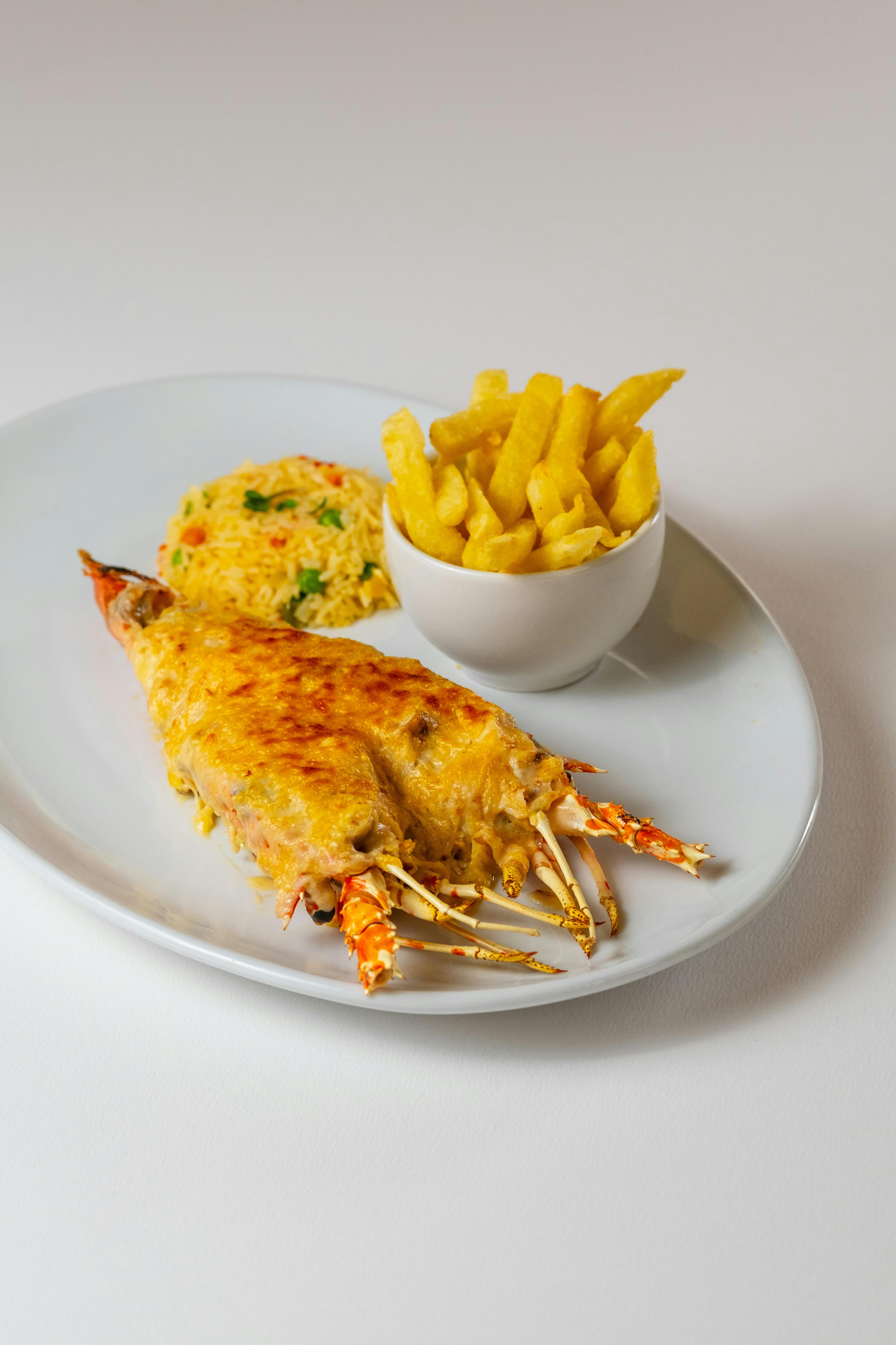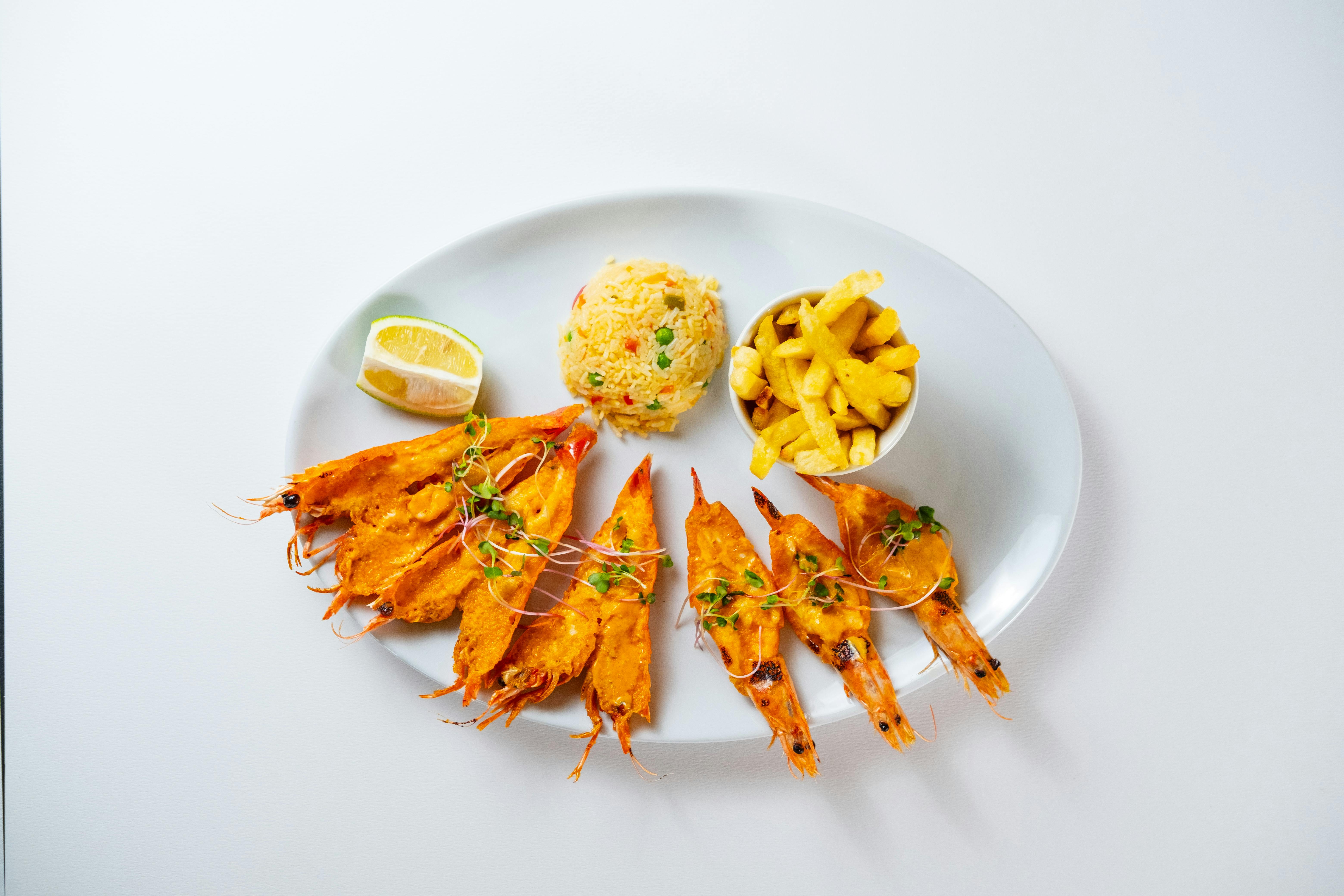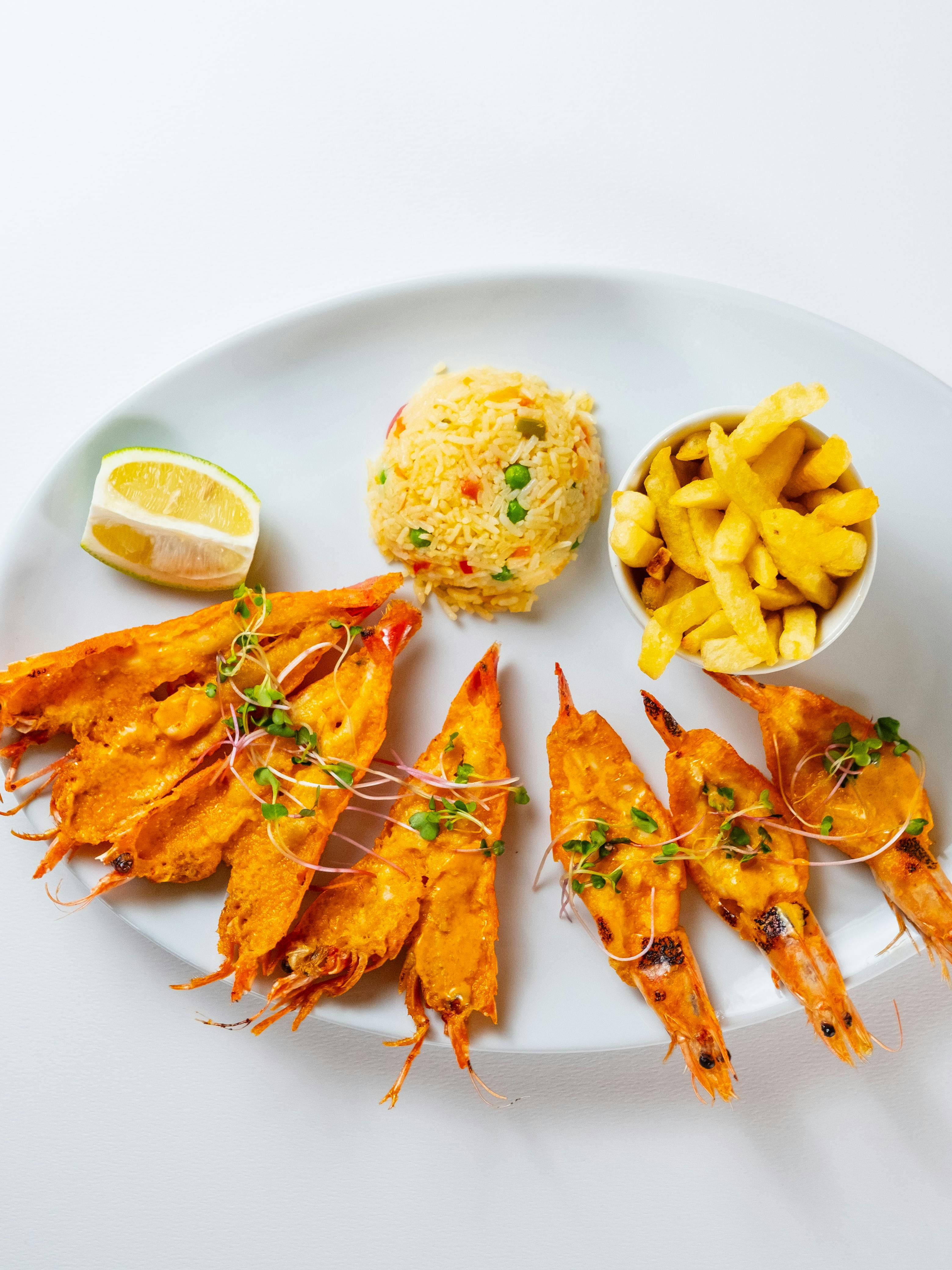 3 Queen Prawns, 3 Langoustines And 1 Baby Lobster (Served With Fries And Rice).