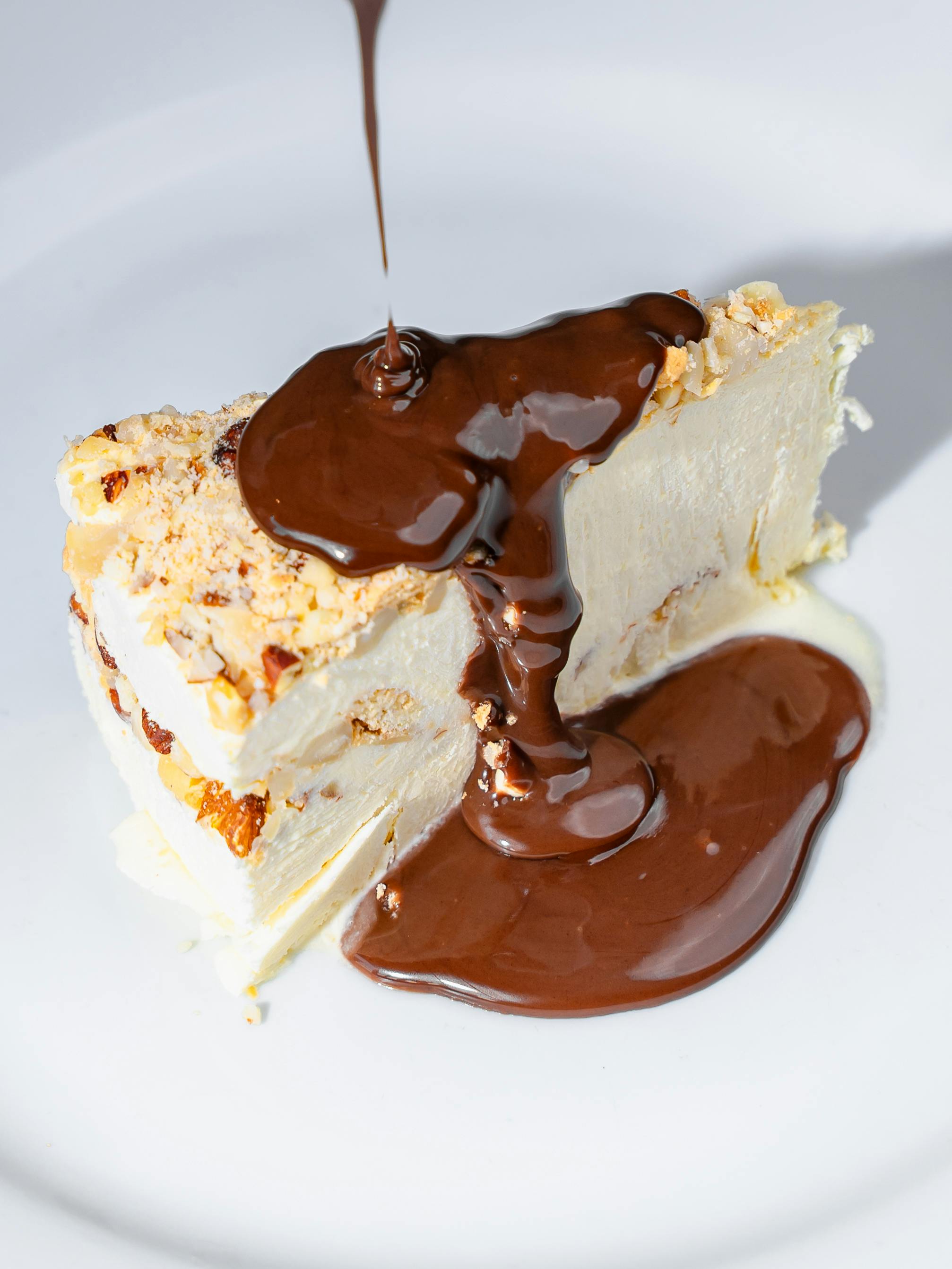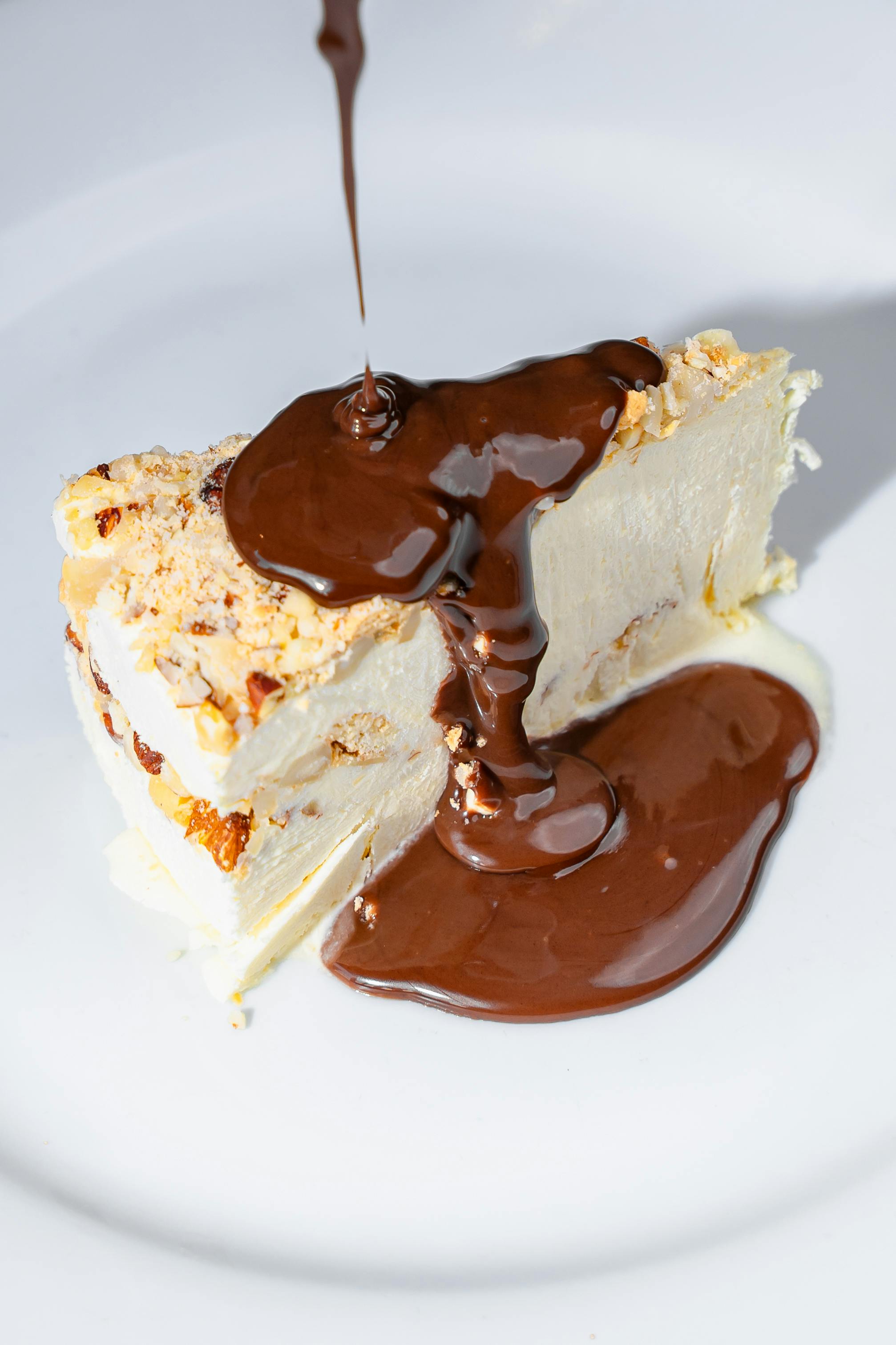Crushed Biscuits, Toasted Nuts With Chocolate Sauce.