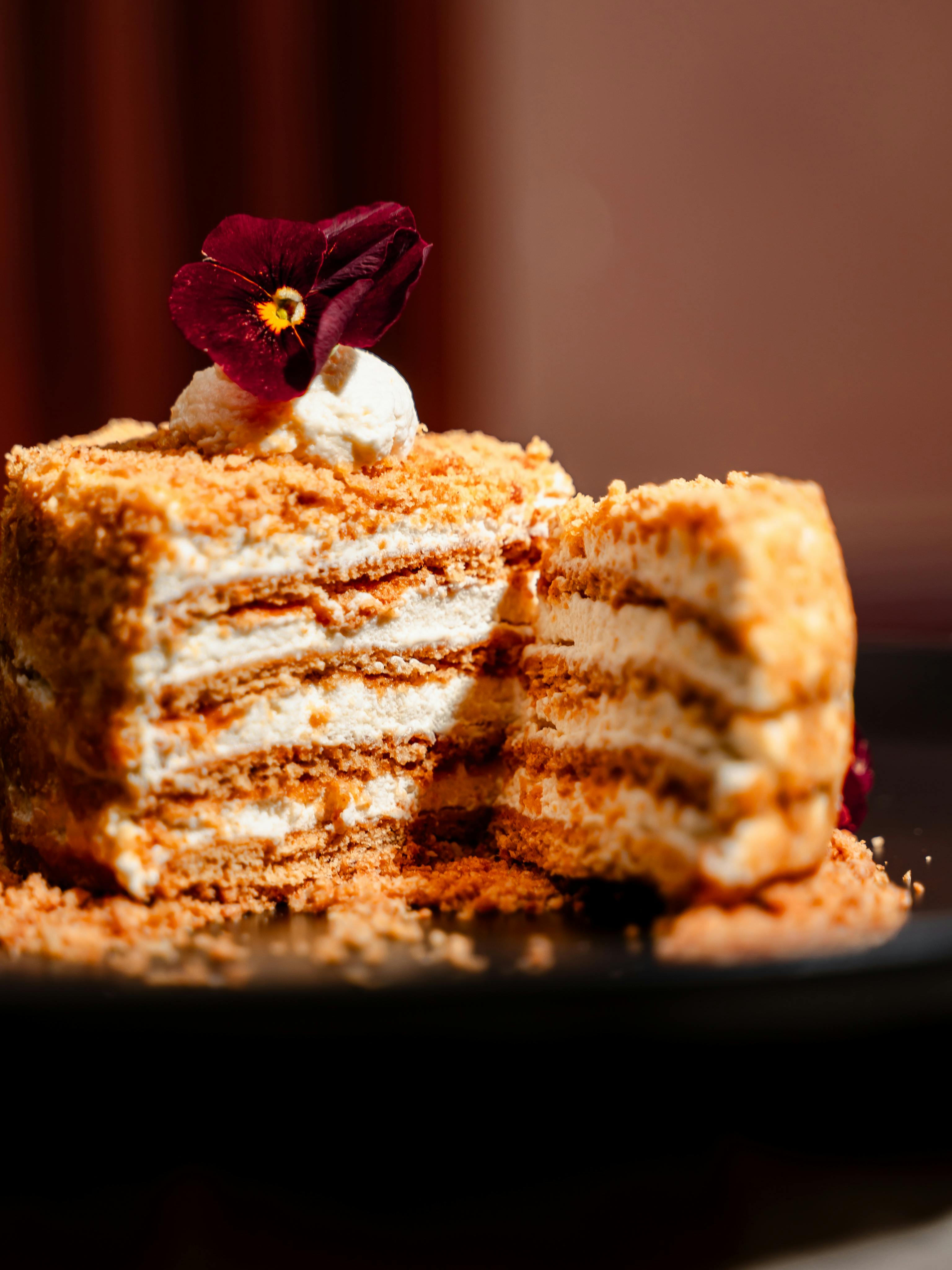 Features Layers Of Moist Honey Infused Sponge Cake.