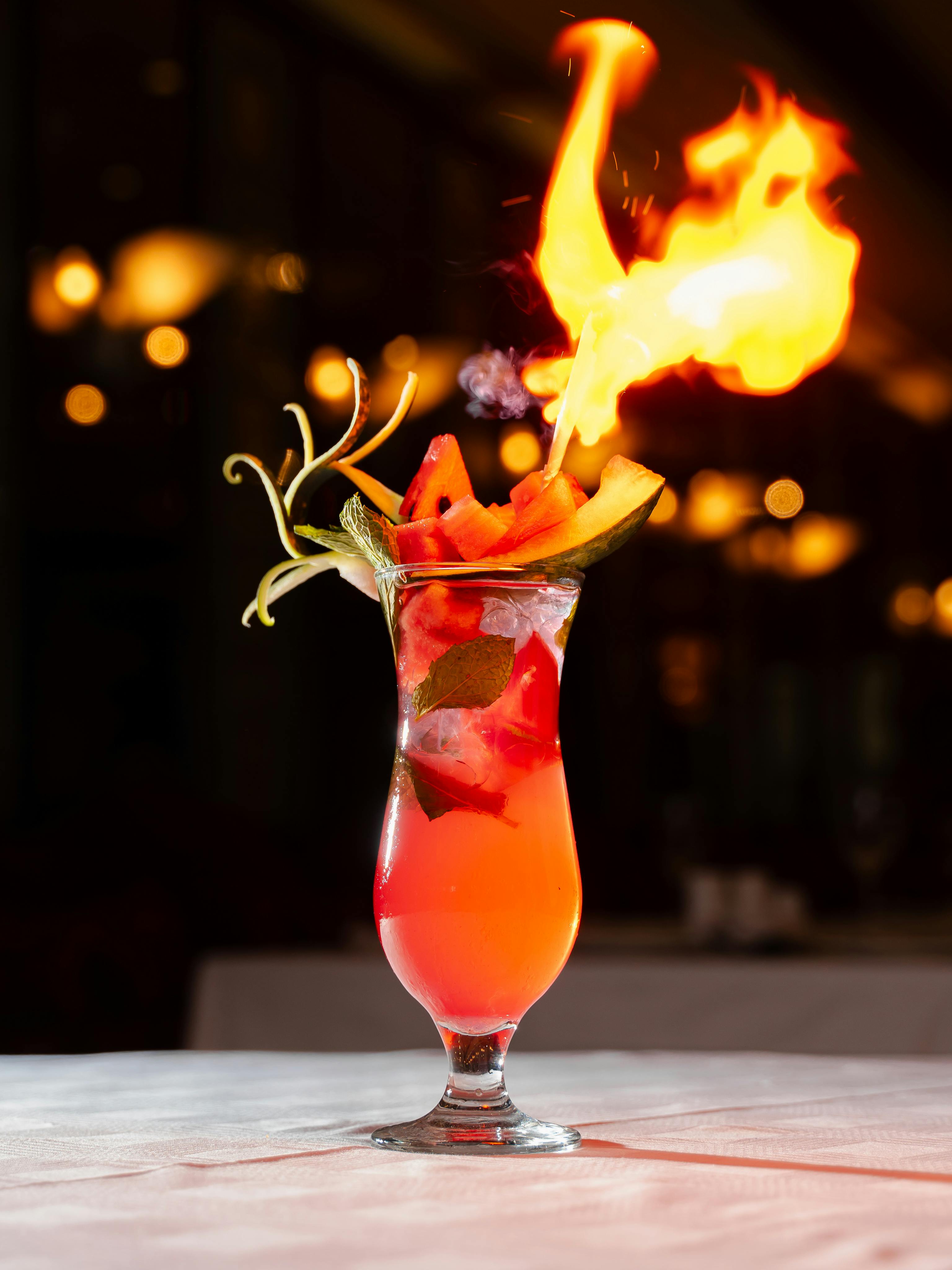 Red Grapefruit Topped With Mango And Infused Lemon And Soda.