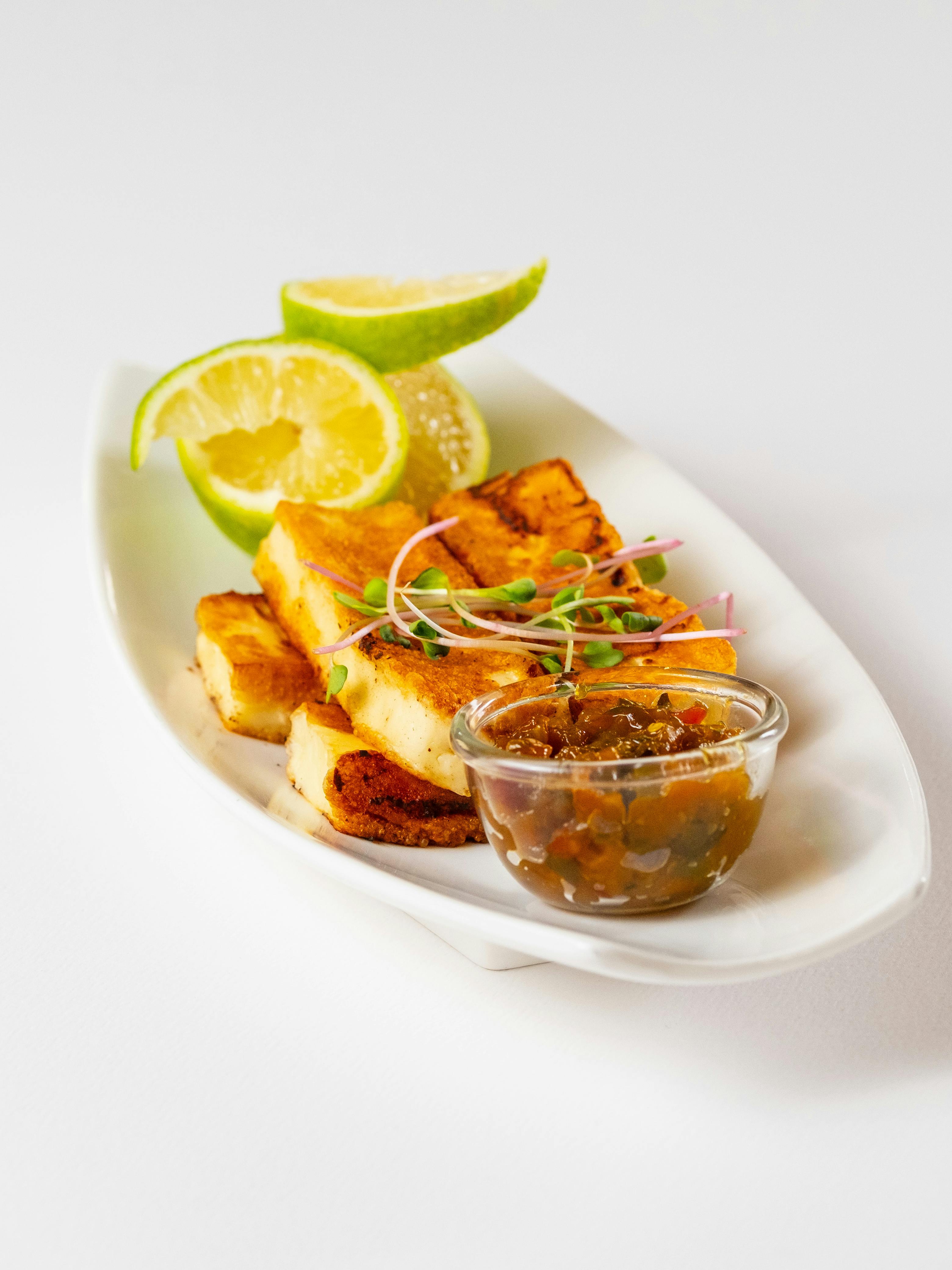 Dusted In Tandoori Spice Sautéed, Accompanied By A Papino And Coriander Salsa.
