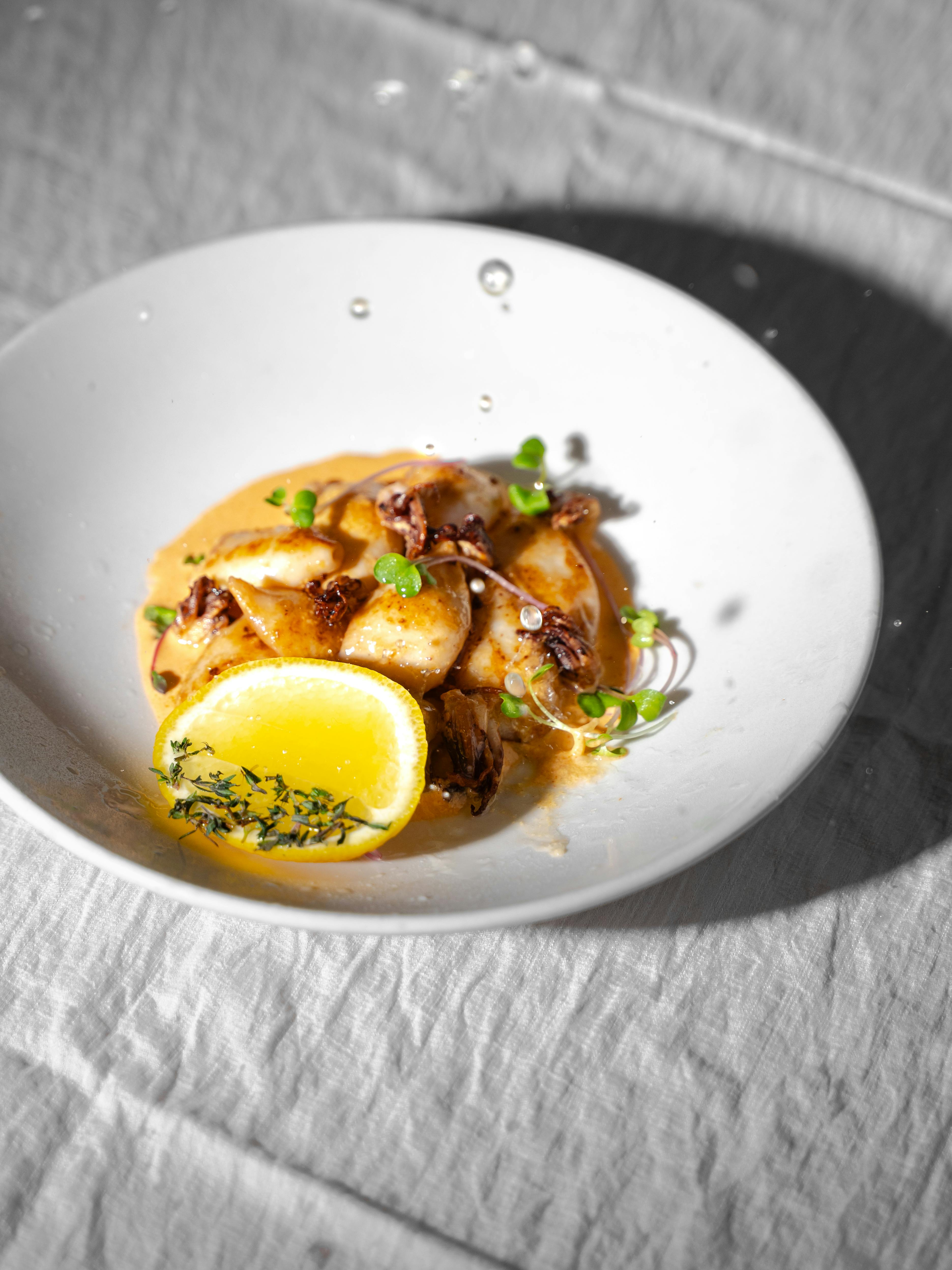 On The Bone Drizzled With A Lemon Butter Sauce.