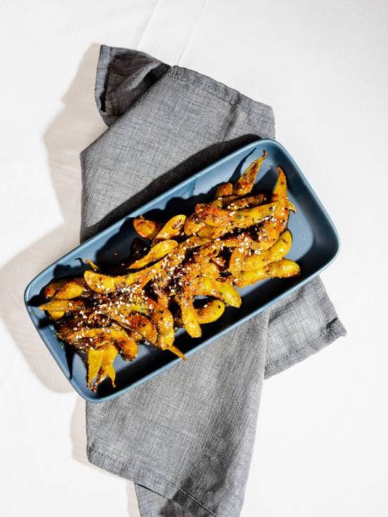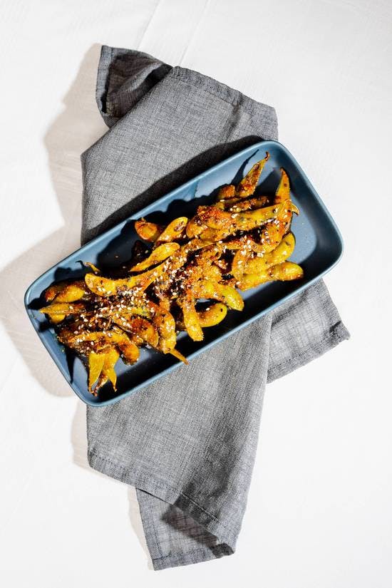 Grilled Edamame Beans Tossed In A Spicy Asian Teriyaki Dressing.