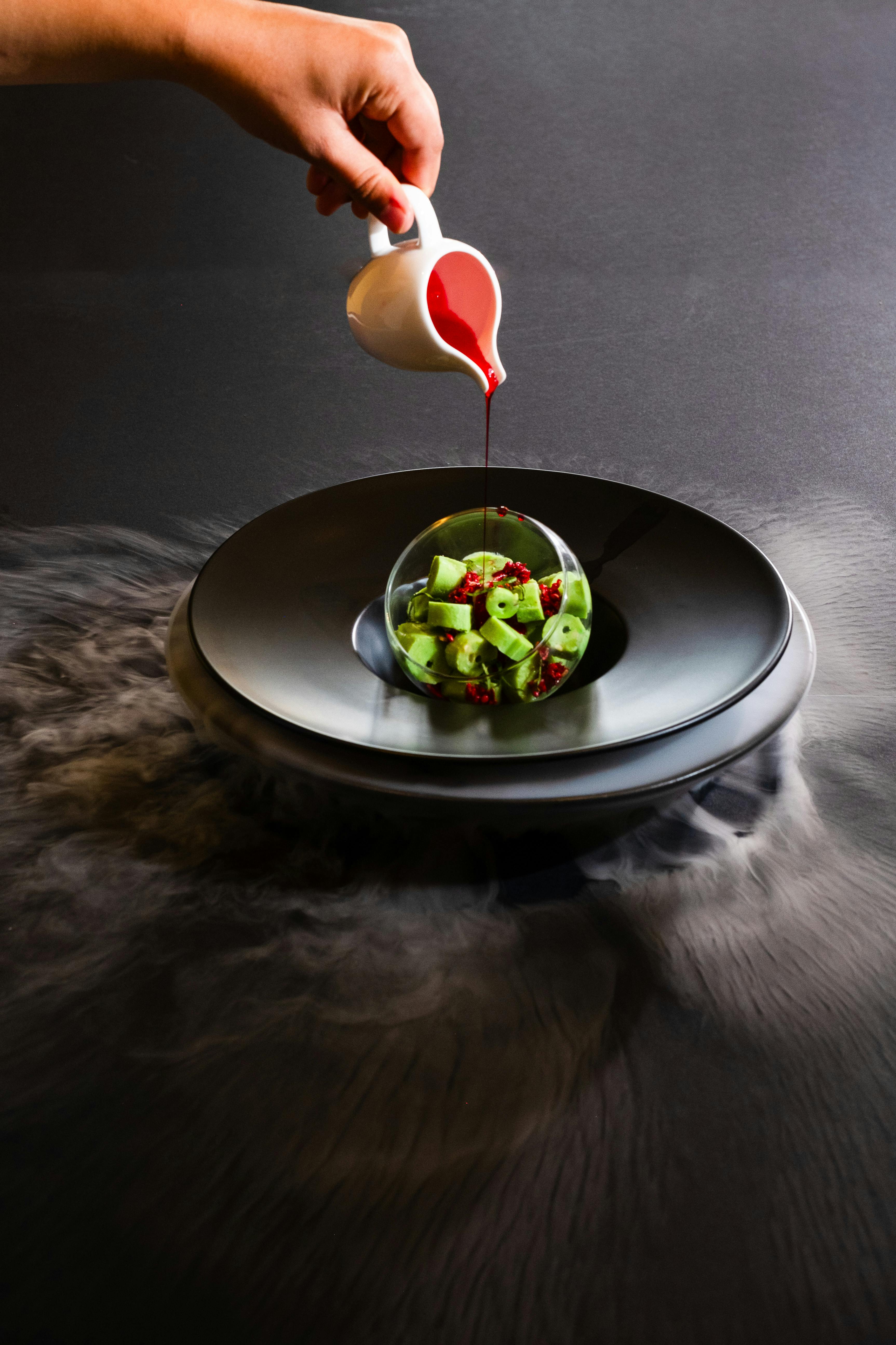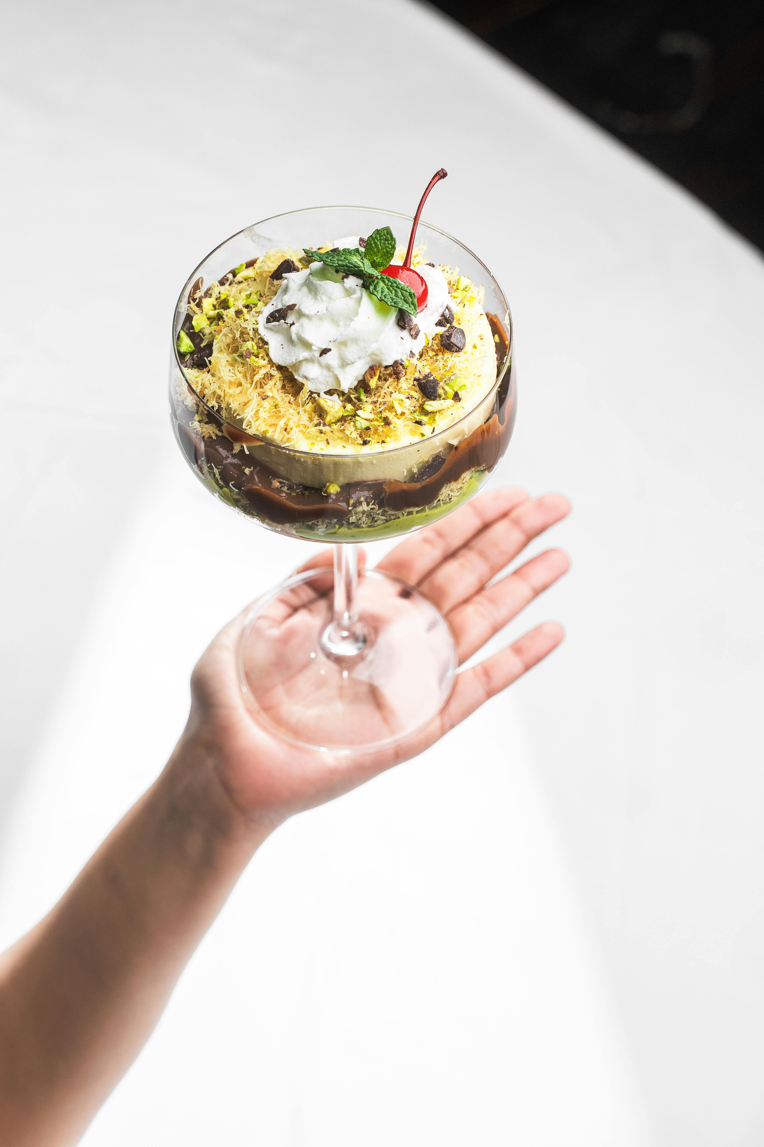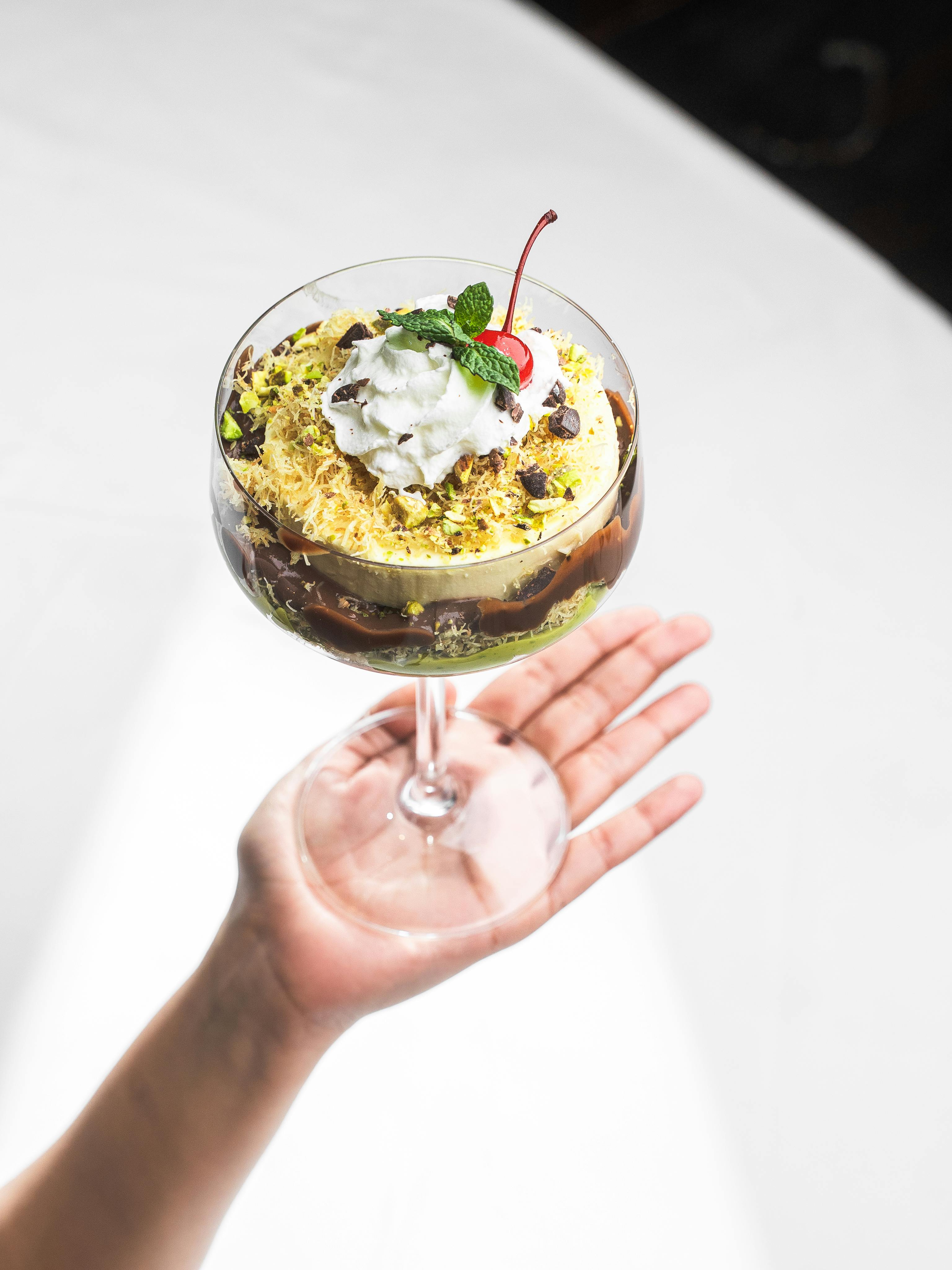 Silky Smooth Crème Based Dessert Served With Pistachio Crème, Chocolate And Toasted Kataifi.