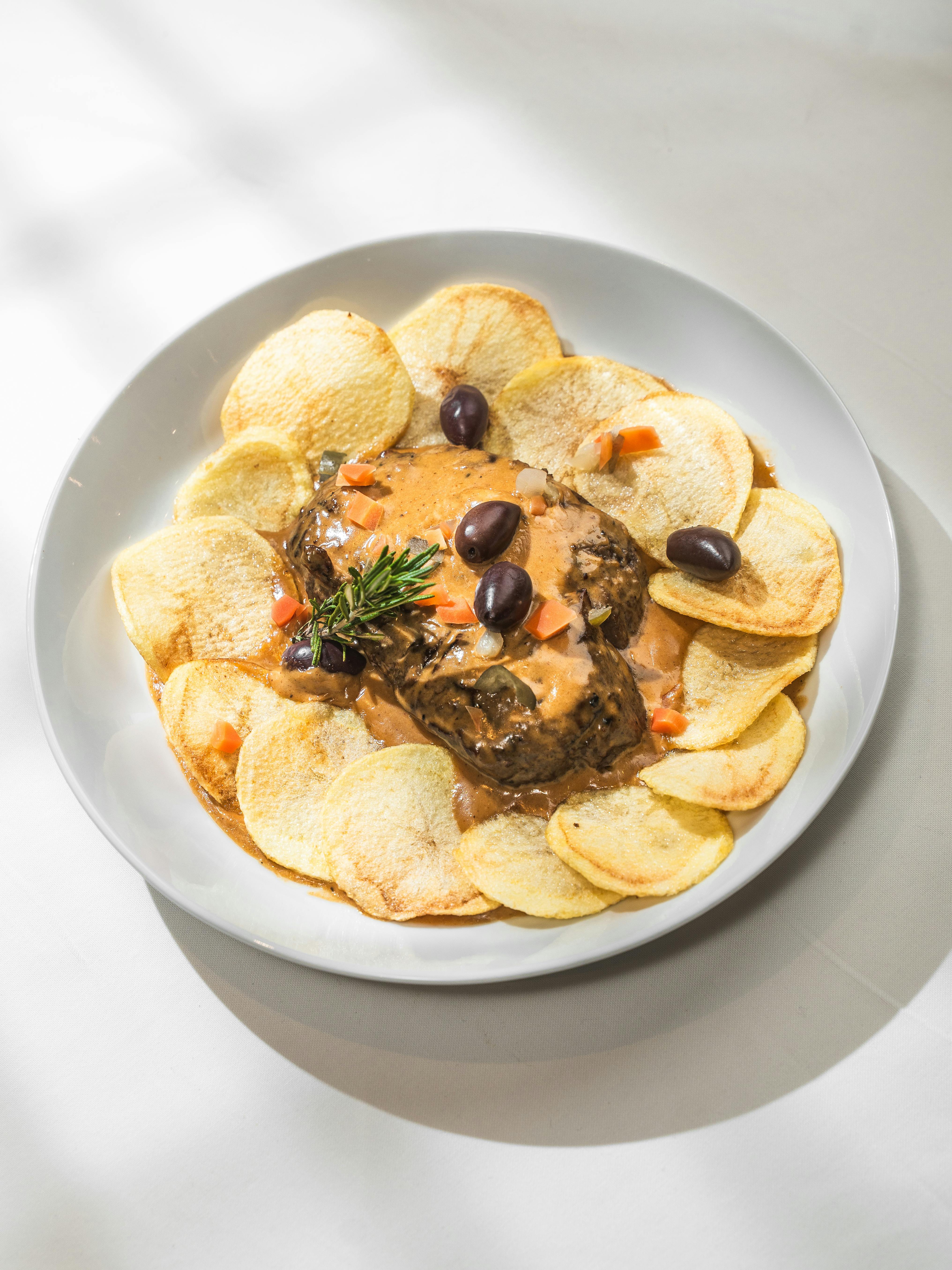 Slow Braised Oxtail Cooked In An In-House Gravy And Served With Mash & Vegetables.