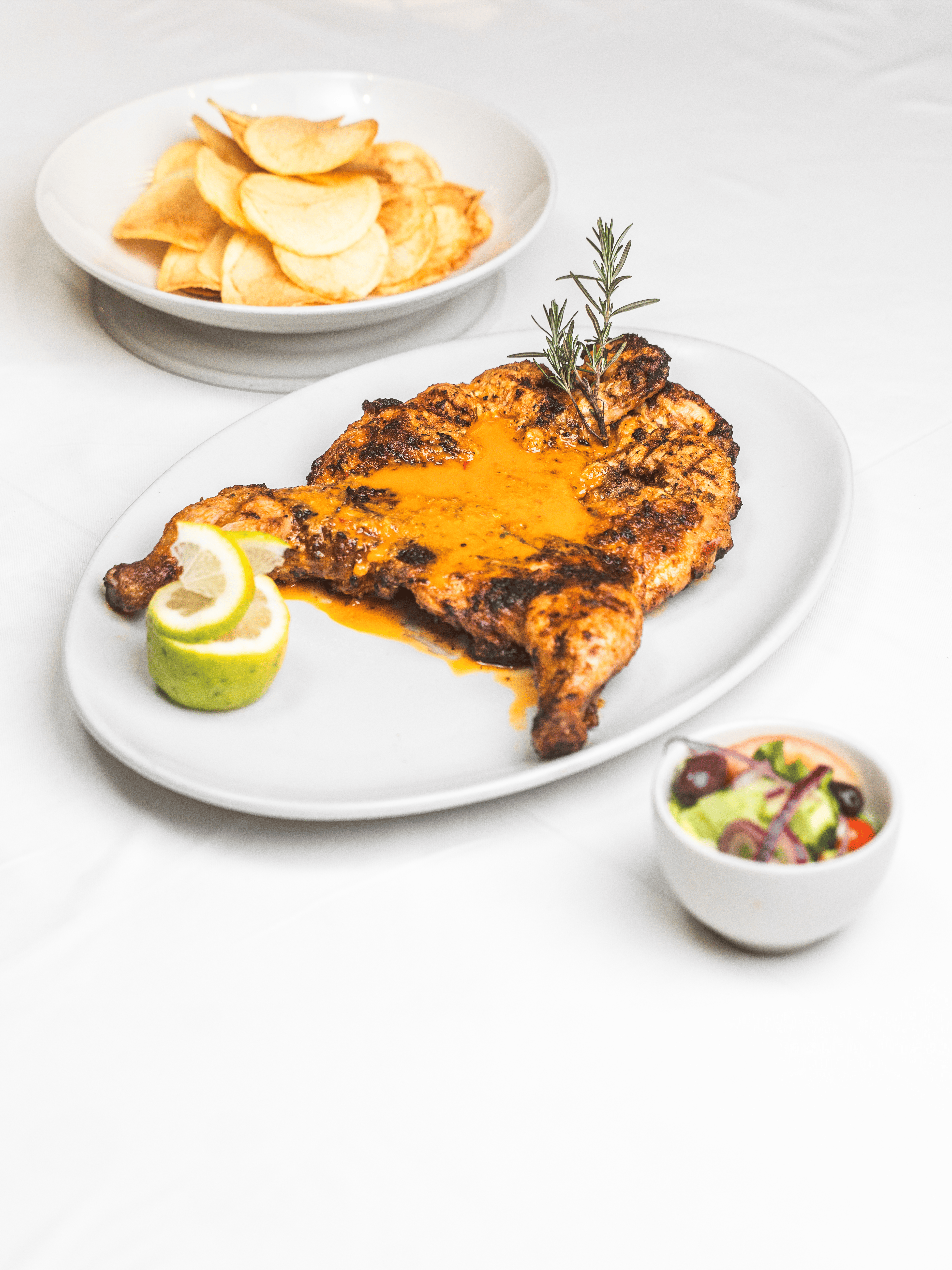 Grilled In A Garlic Lemon Sauce or Peri Peri Sauce.